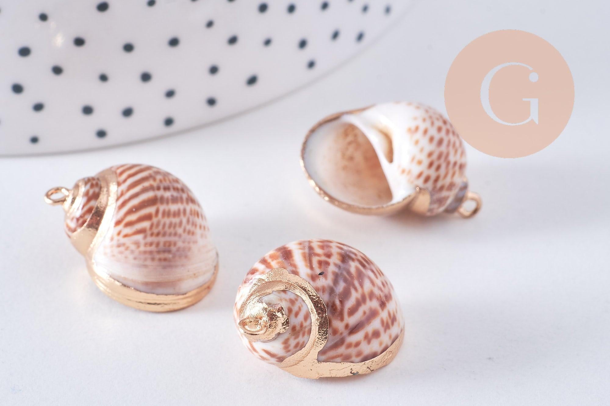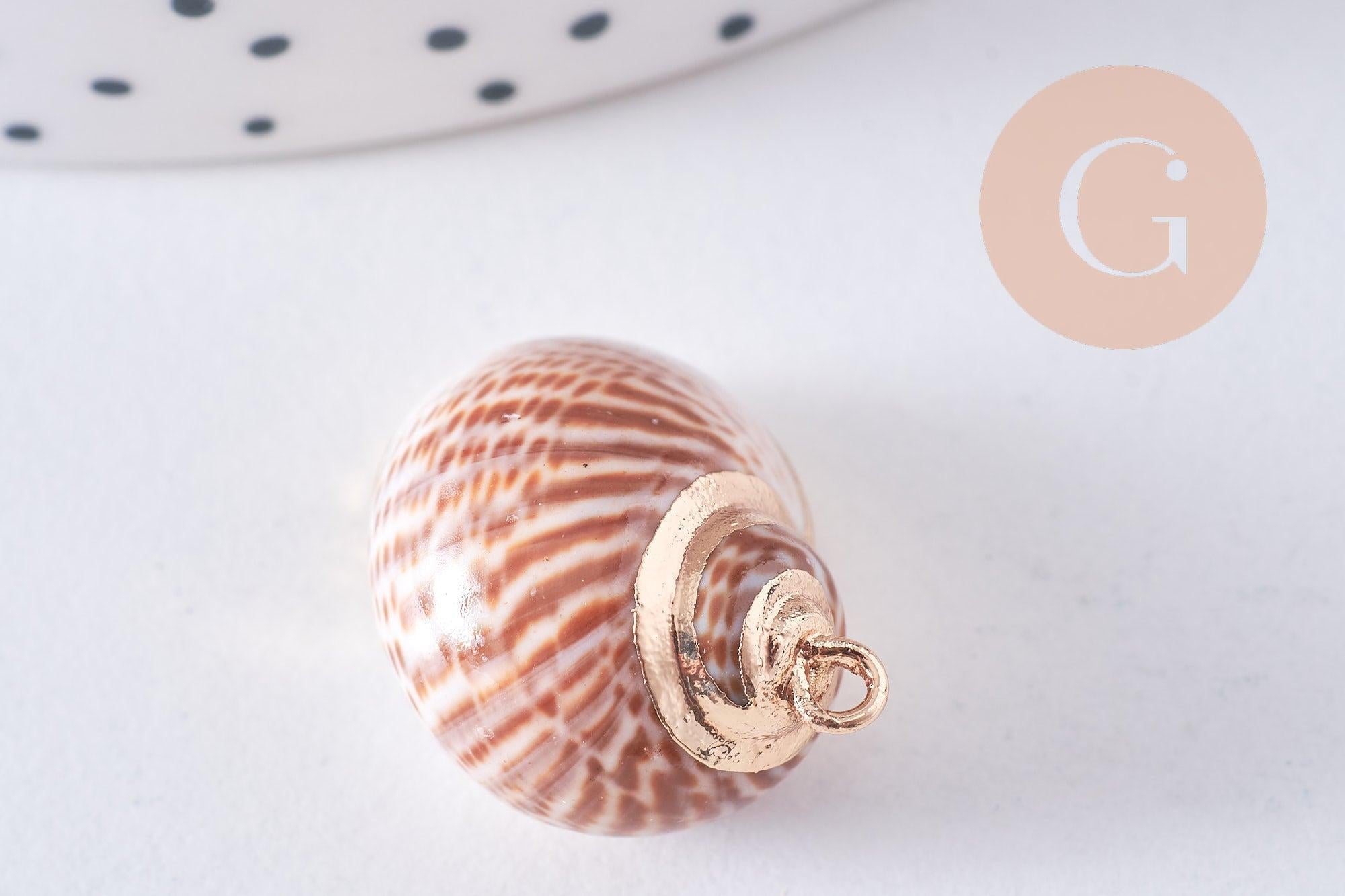 Colgante de concha natural en latón dorado de 25-30 mm, x1 (G0708)