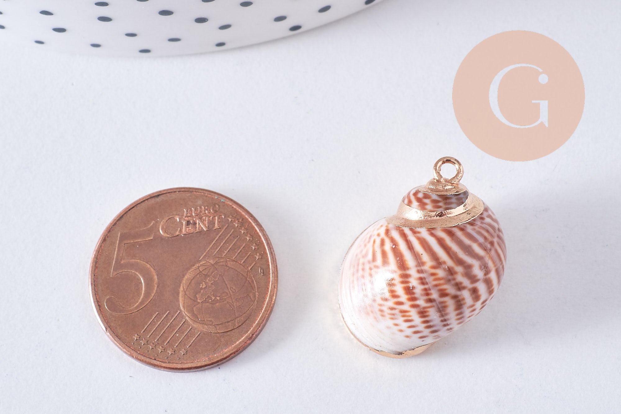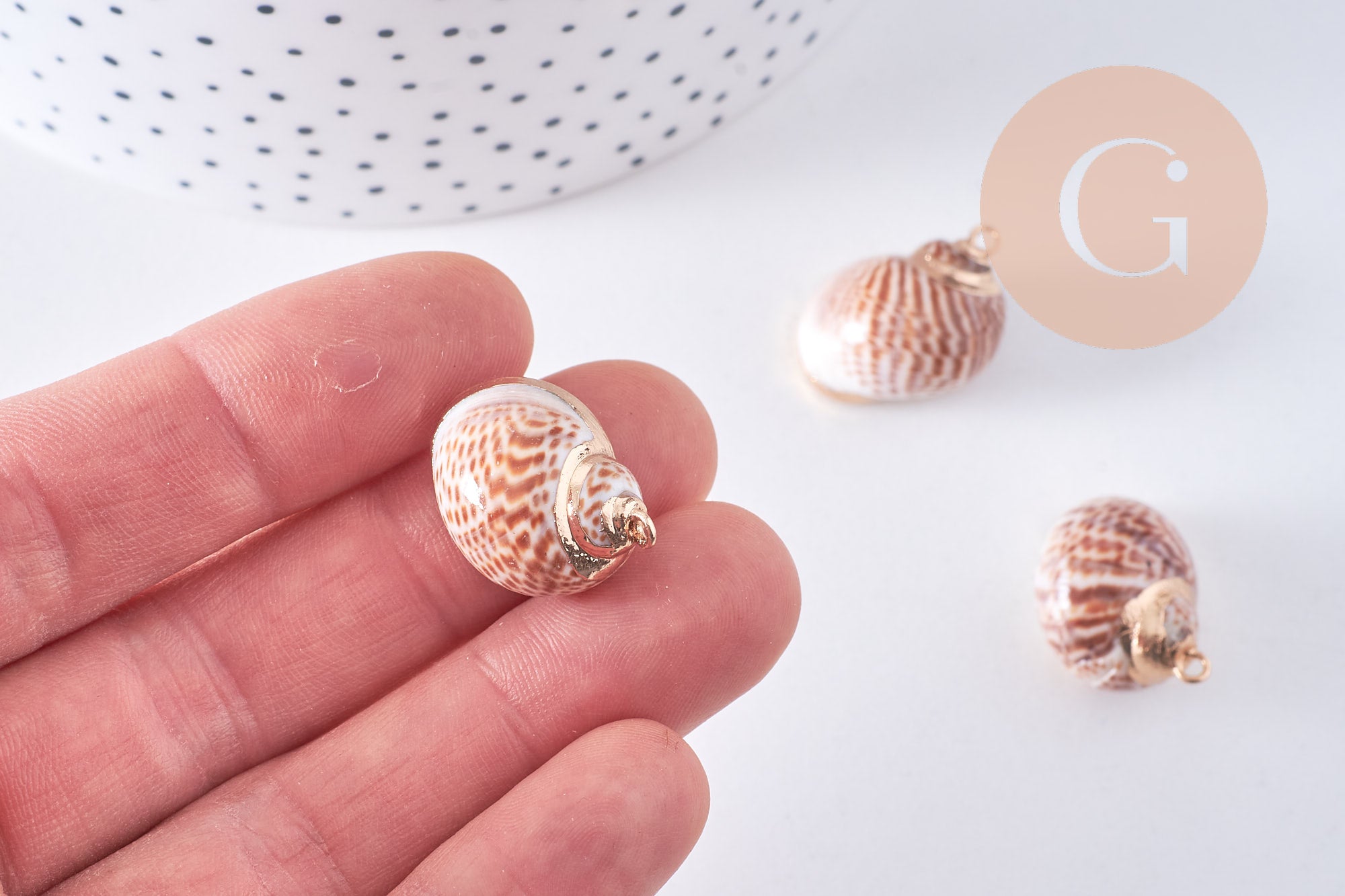 Déjate seducir por este colgante de concha natural con bordes dorados , perfecto para tus creaciones de bisutería DIY. Cada pieza es única, con sus tonos beige naturales y reflejos dorados que aportarán un toque exótico y refinado a tus creaciones.