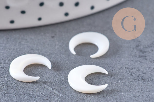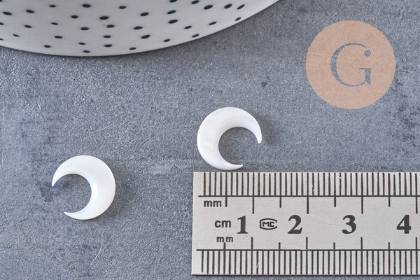 Colgante de luna de nácar blanco natural, concha blanca, cuerno perforado, fabricación de joyas, colgante de nácar, 13x12mm, juego de 2 (G3253)
