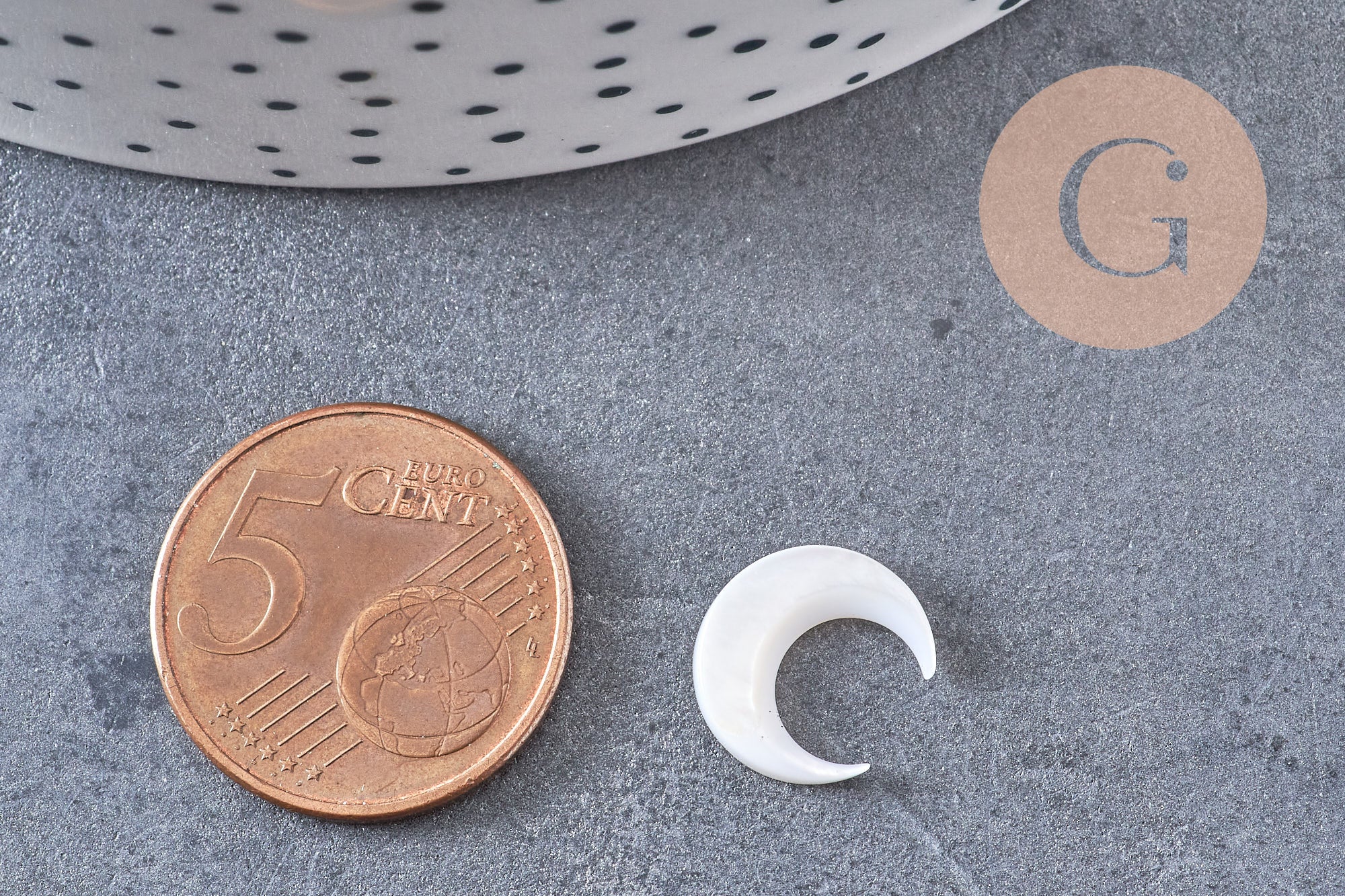 Enamórate de esta luna creciente hecha de nácar natural perforado.