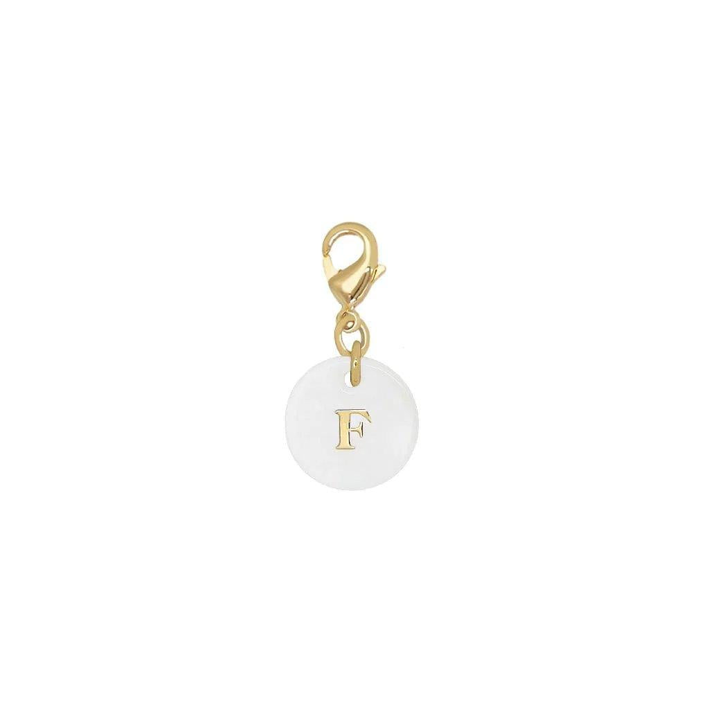 Un colgante redondo de nácar con la inicial de tu nombre, para completar un collar, un sautoir o unos pendientes.