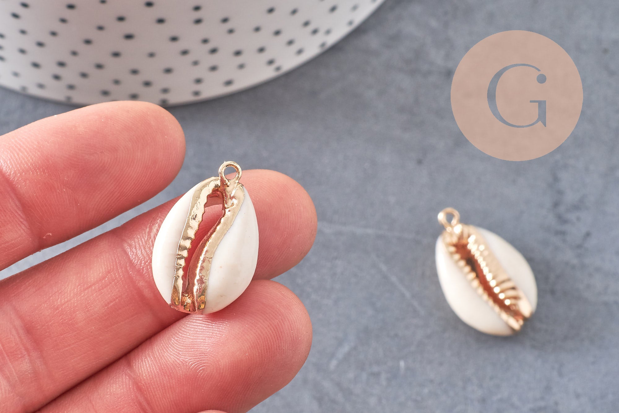 Colgante de concha cauri natural abierta en oro, colgante de oro, creación de joyas, joya de concha de caracol, concha natural, 23 mm