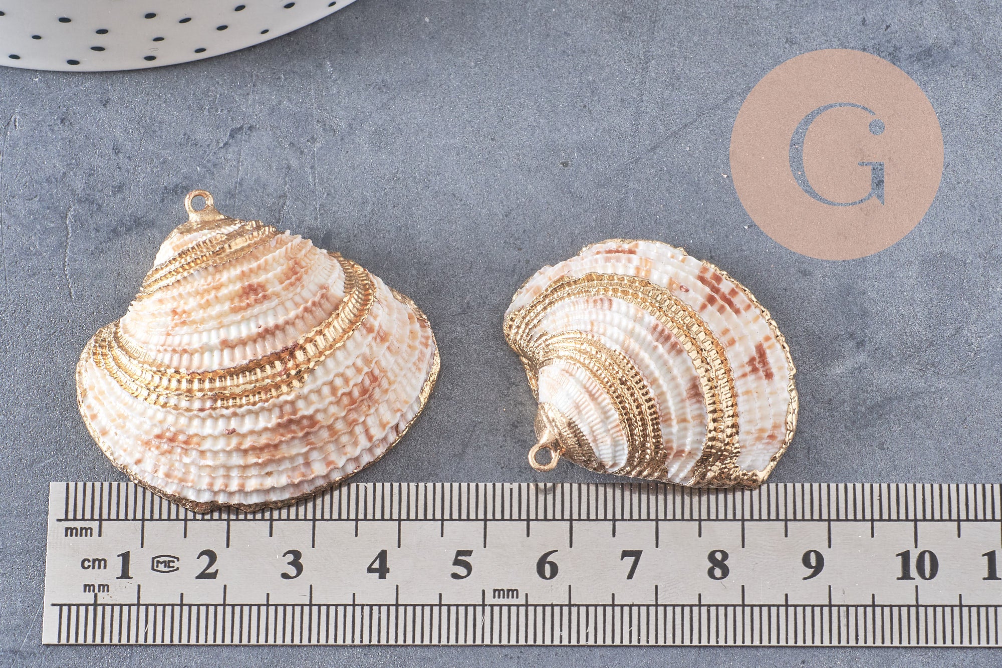 Colgante de concha de oro natural, colgante de oro, creación de joyas, concha de joya, concha de oro, 29-41 mm, x 2 G5143