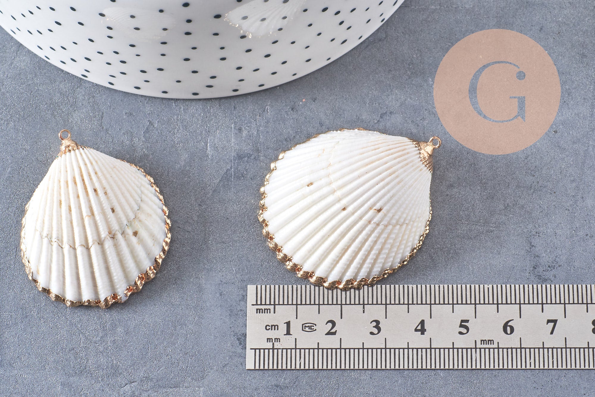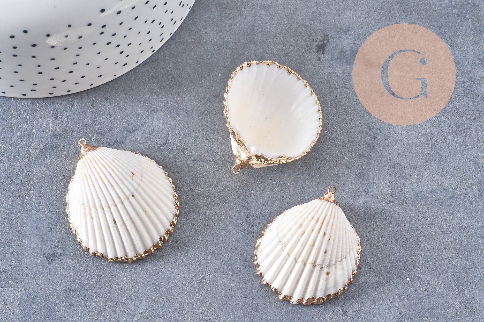 Pendentif coquillage naturel coque doré 42mm, x1 (G0873)