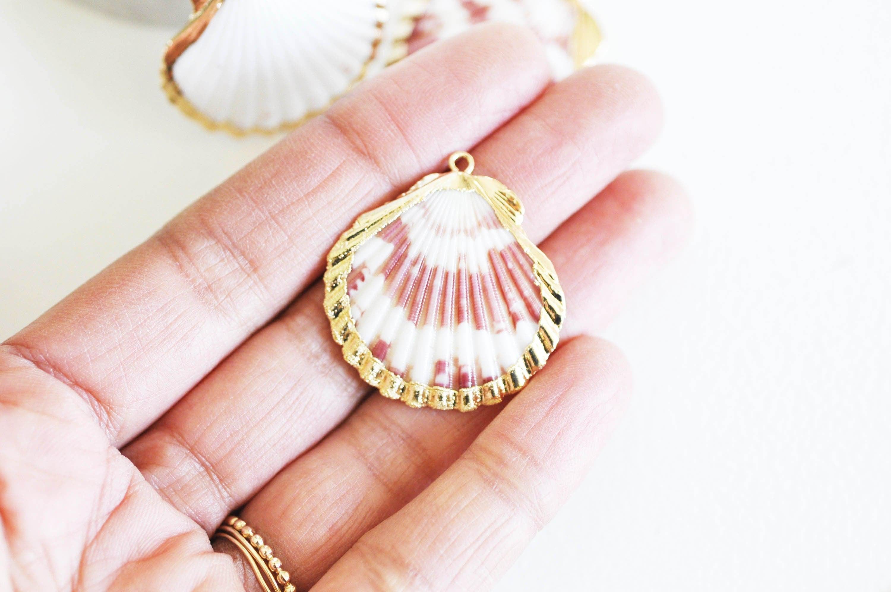 Colgante de concha de oro natural, colgante dorado, creación de joyas, concha joya, concha de oro, 33-54 mm, x1, G1795