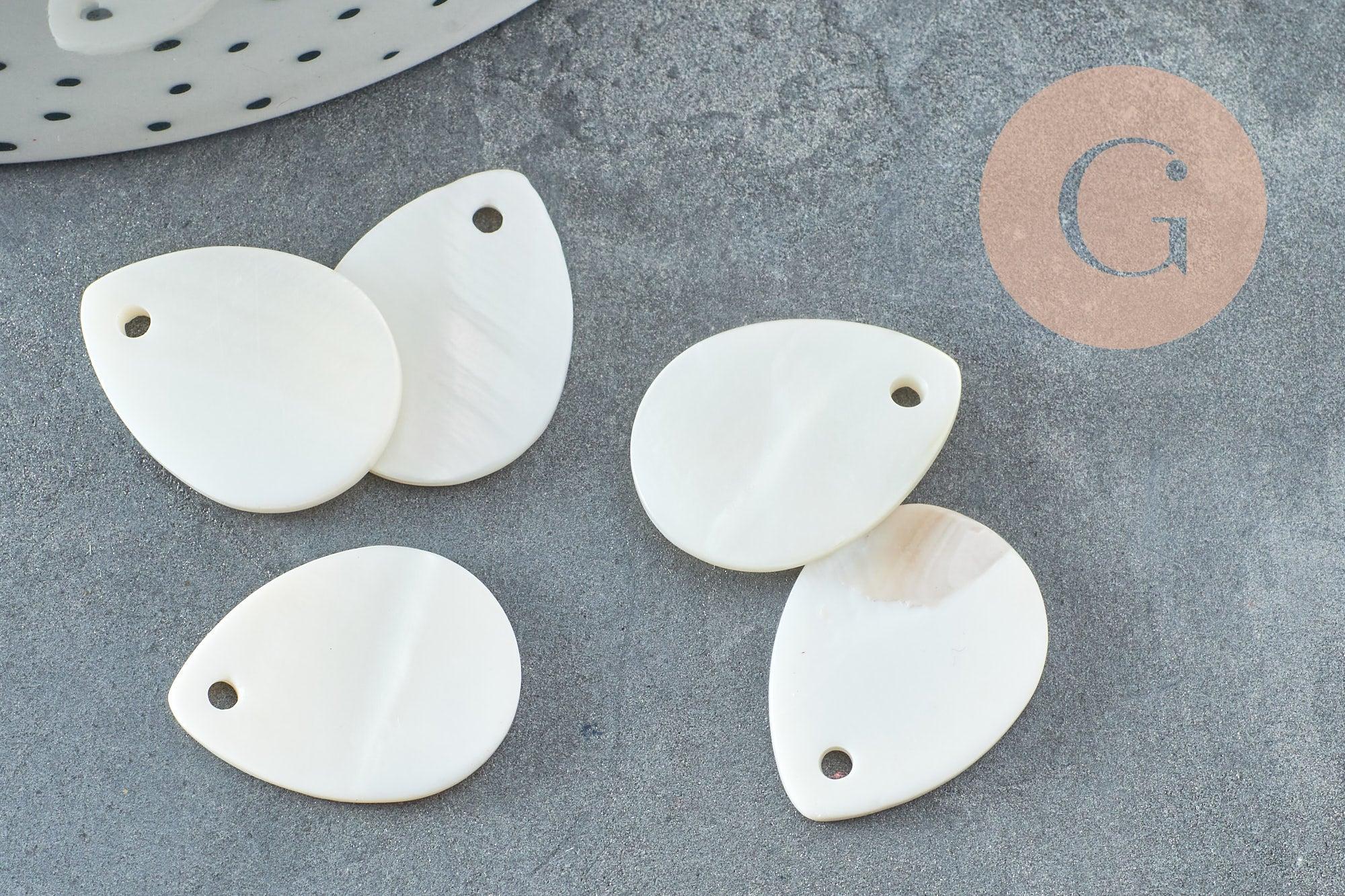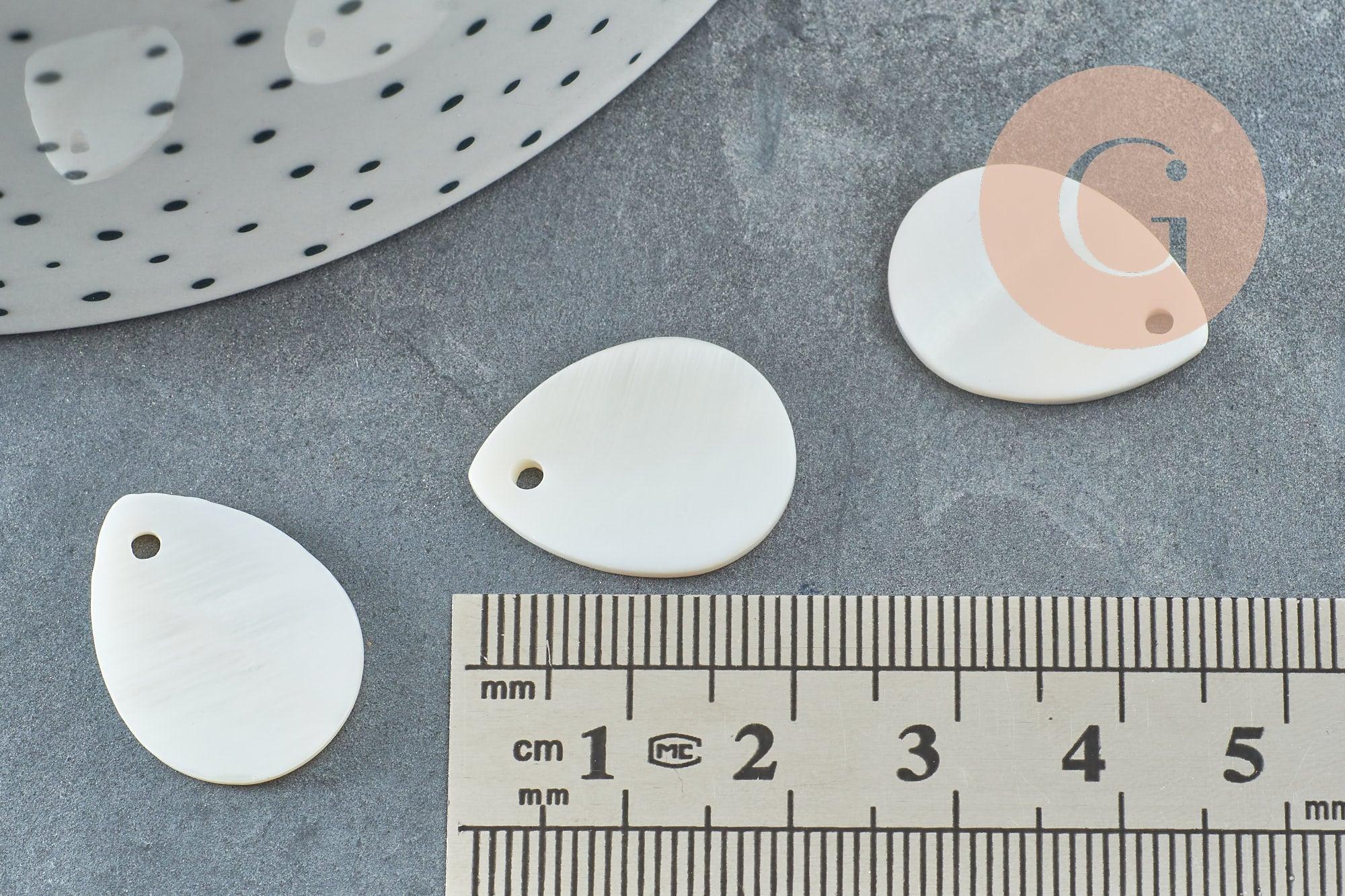 Colgante gota de nácar blanco natural, perla gota, nácar natural, concha blanca, 20 mm, x10 G5134