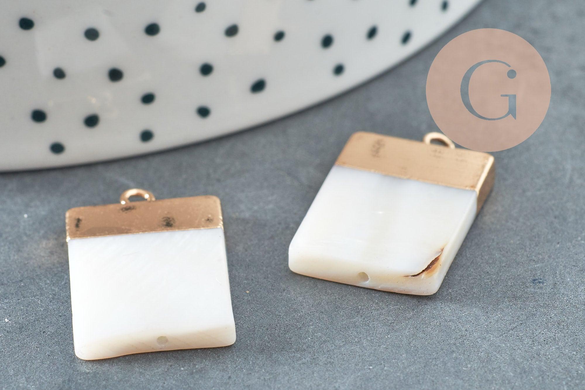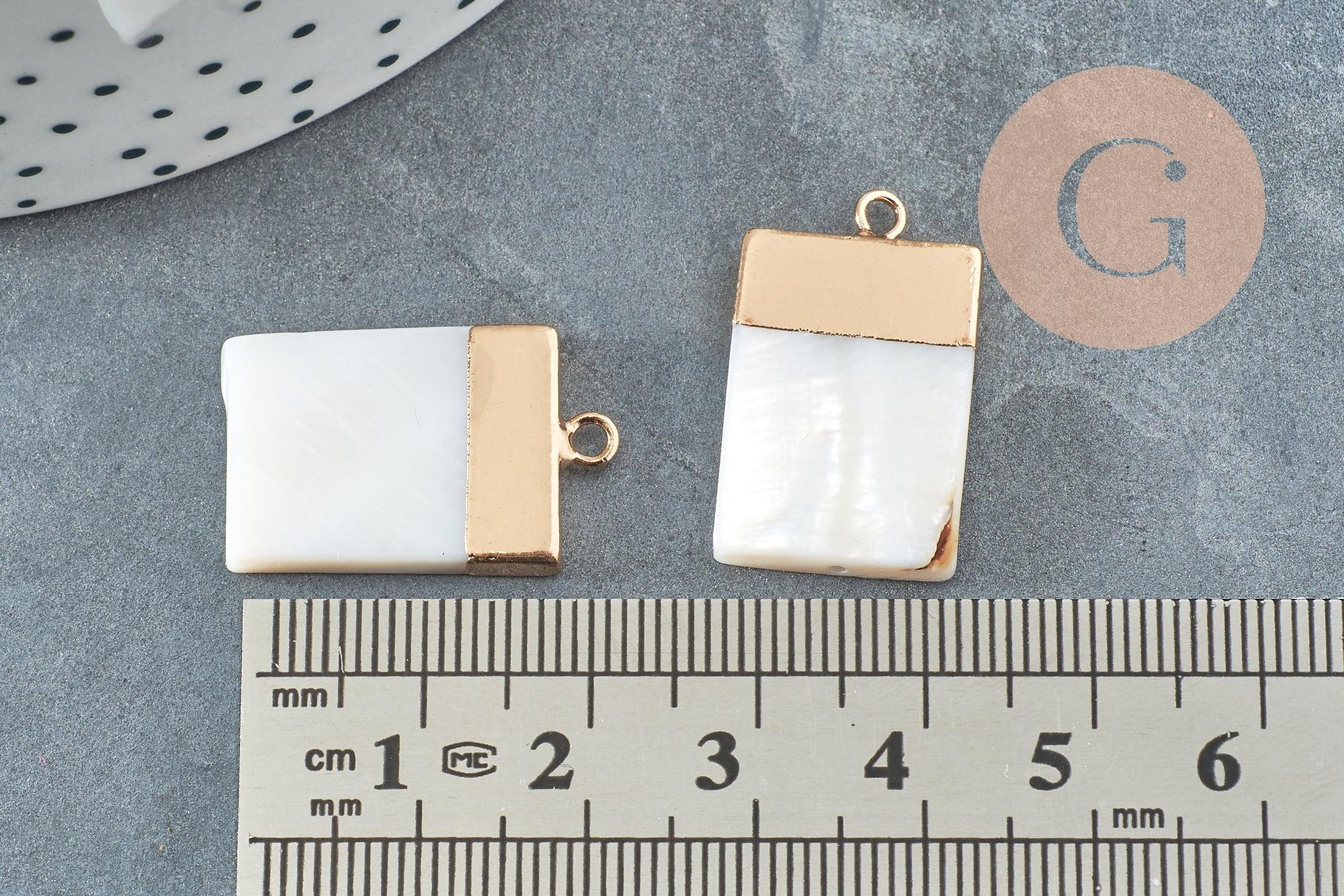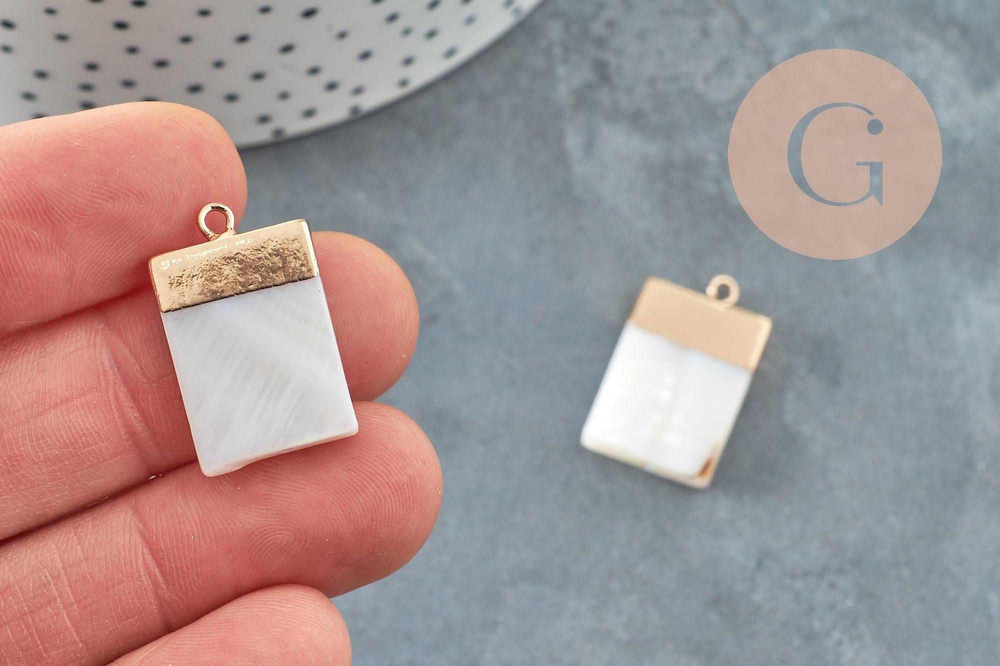 Colgante de nácar blanco natural, rectángulo dorado 24mm, colgante de nácar redondo, concha blanca, x2 G2579