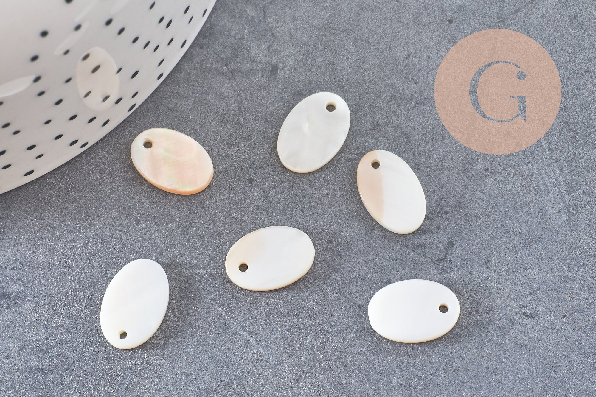 Colgante ovalado de nácar blanco natural, perla ovalada, nácar natural, concha blanca, creación de joyas, 15 mm, X10 (G0390)