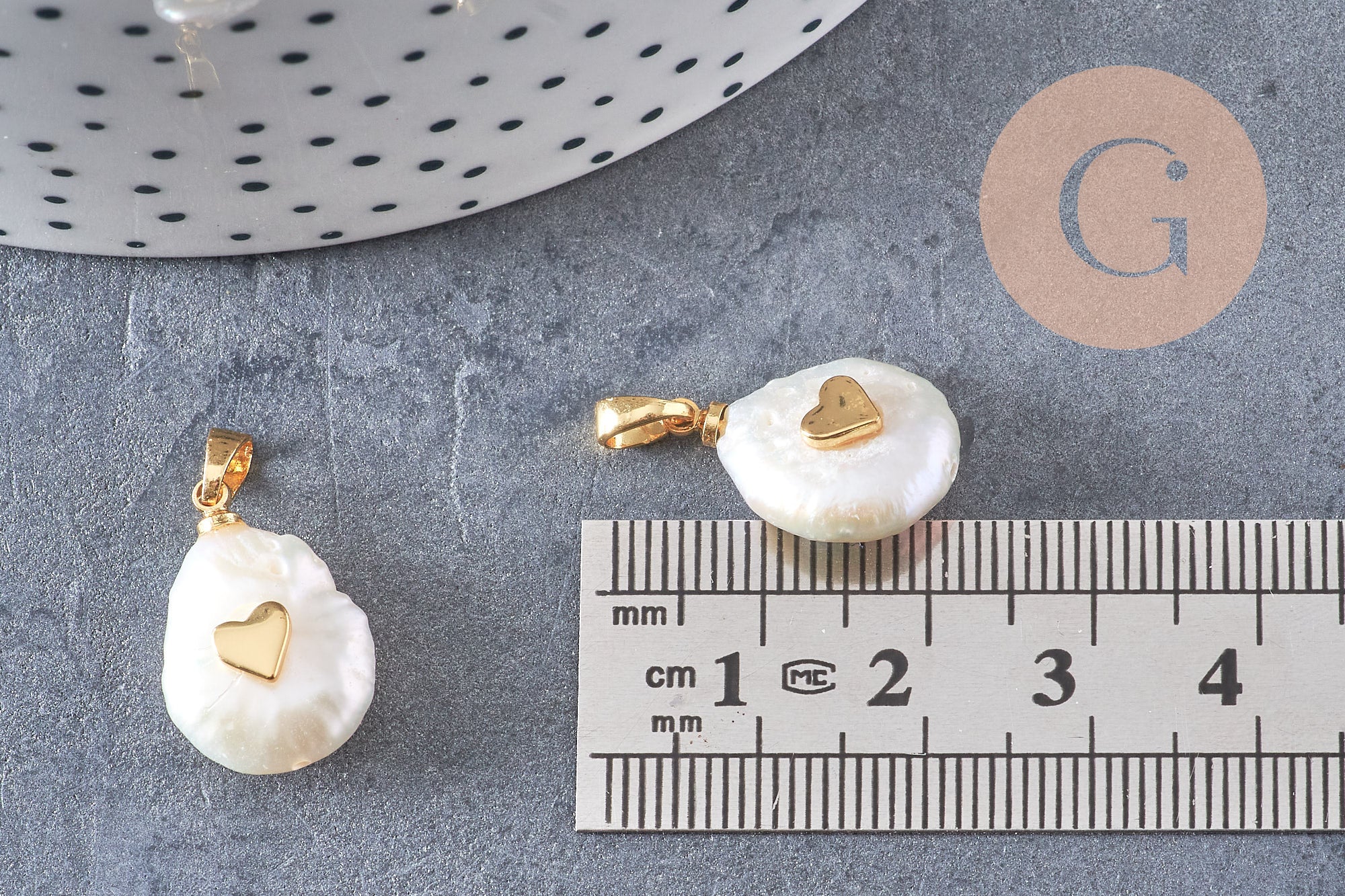 Colgante Keshi de perla natural en forma de corazón, dorado, amuleto de la suerte, perla de agua dulce, diseño de joyería, perla natural blanca, 17-27 mm, 1 unidad (G3091)