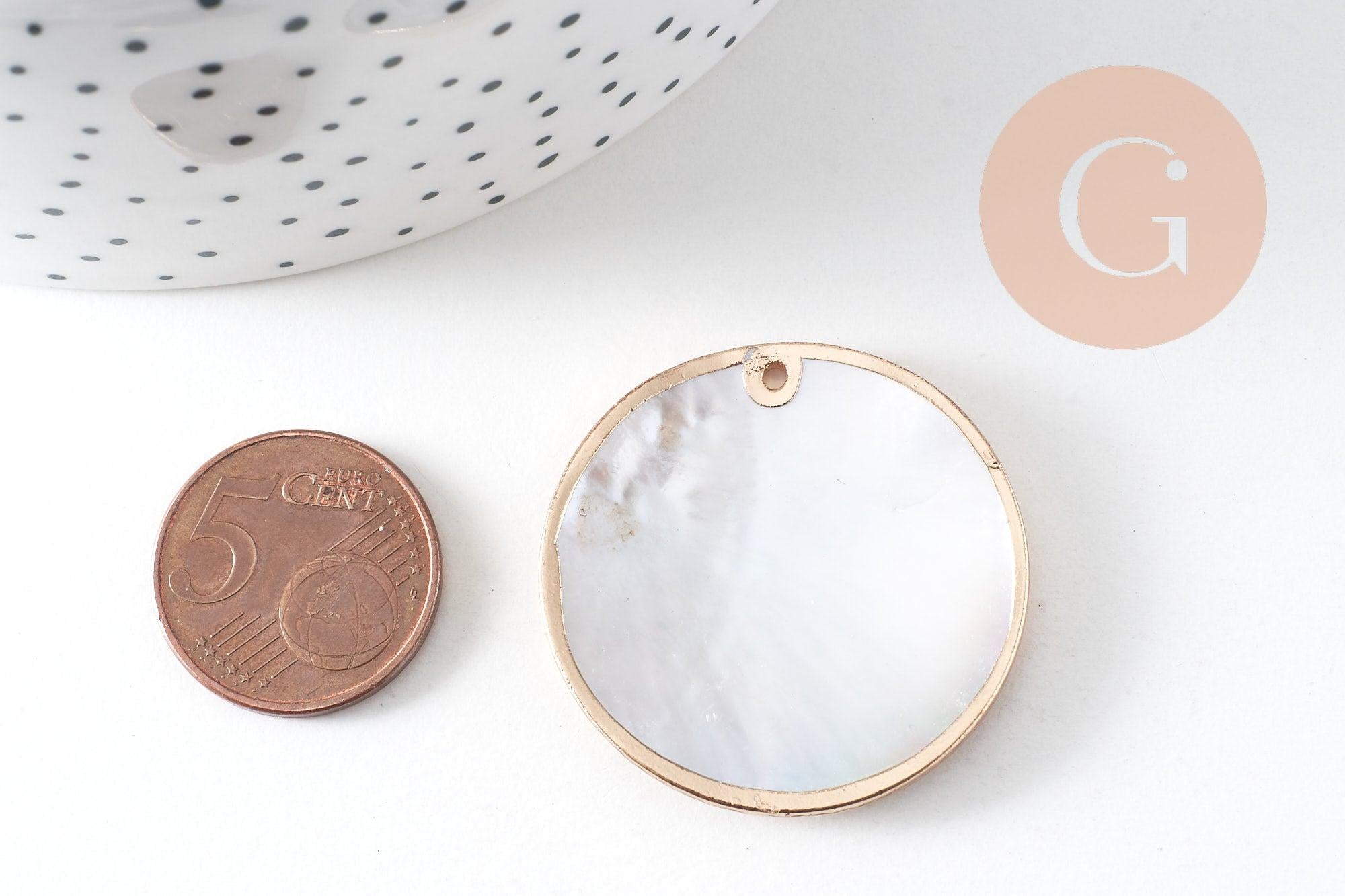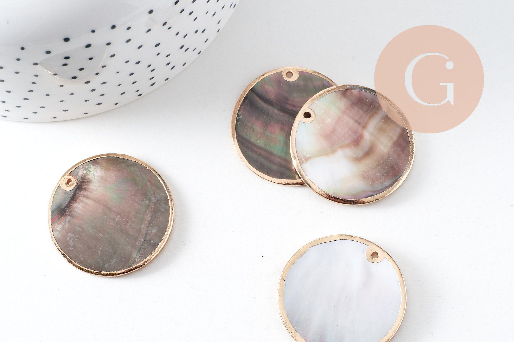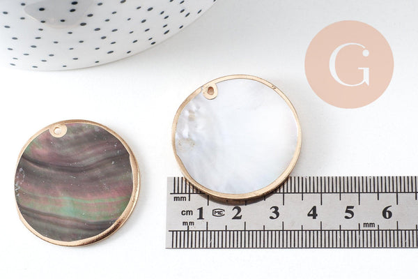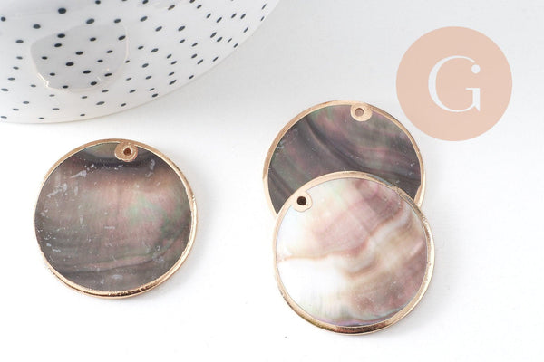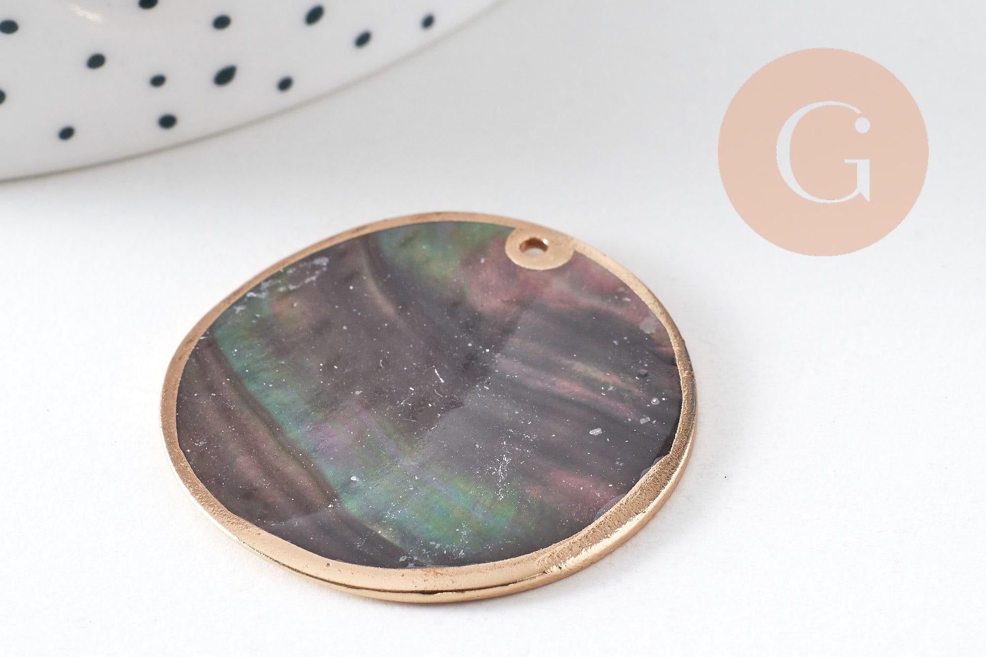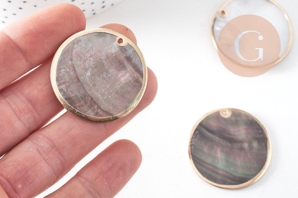 Colgante redondo de nácar negro en oro, colgante de concha, concha negra, concha natural, creación de joyería, 35 mm, x2 (G2182)
