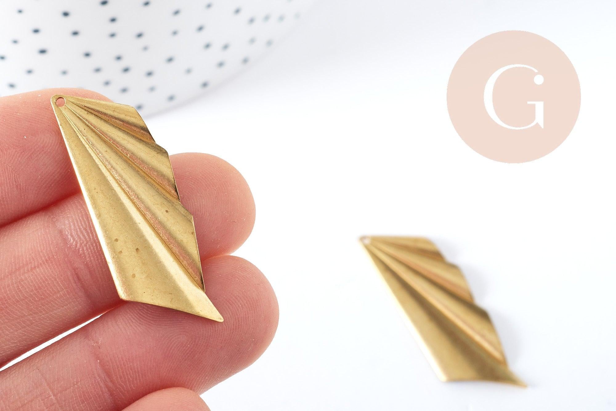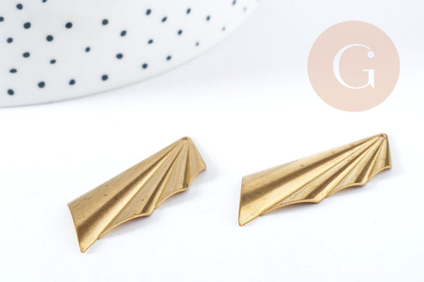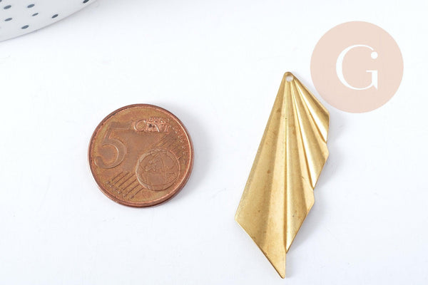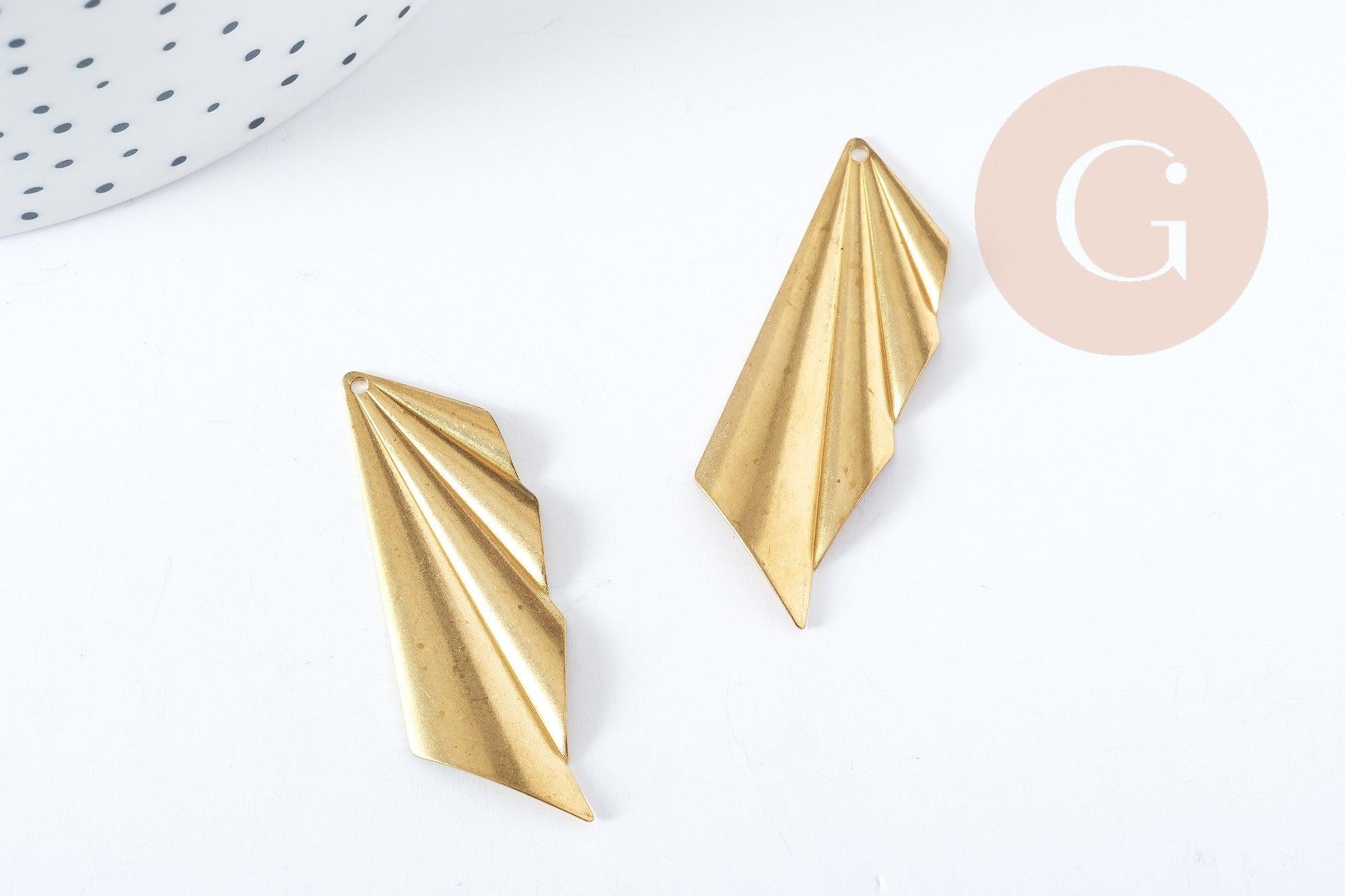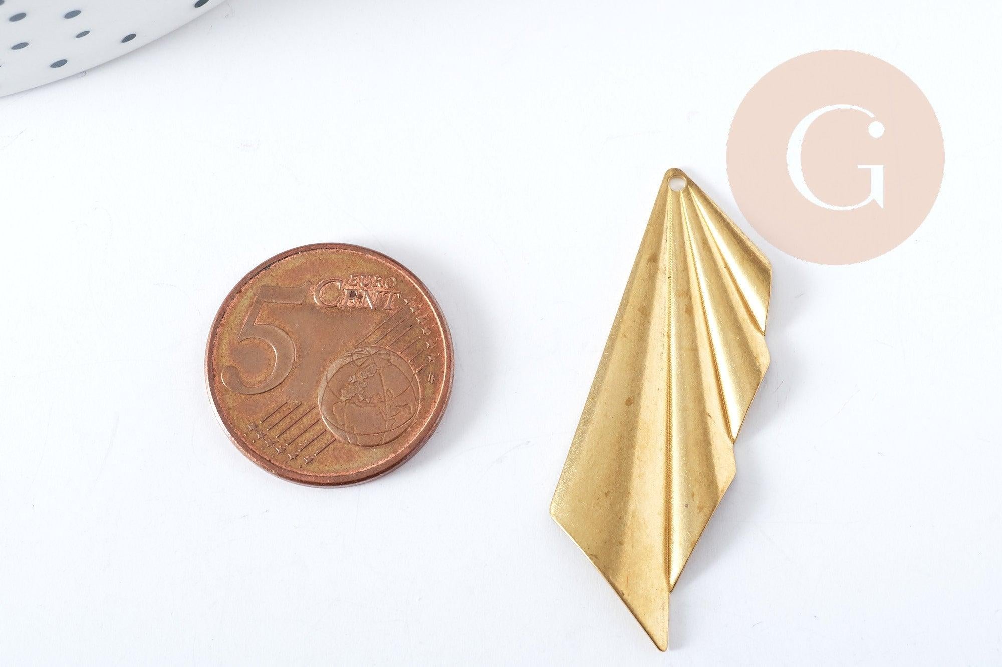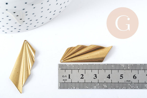 Pendentif éventail géométrique laiton brut 40mm, création bijoux laiton brut x2 (G6531)