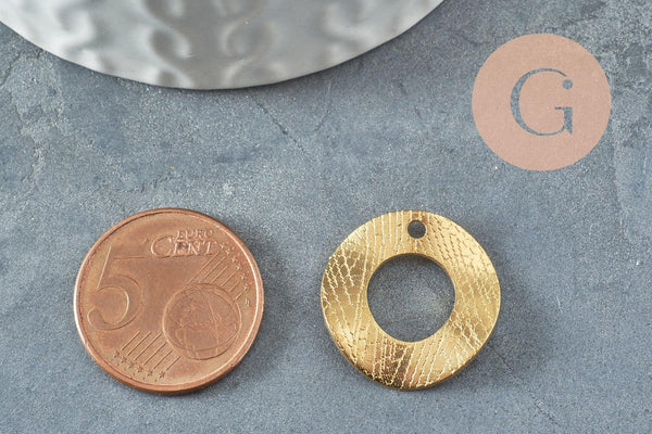 Conectores circulares texturizados de latón crudo perforados de 20 mm, creación de joyas colgantes geométricas, x5 (G2760)