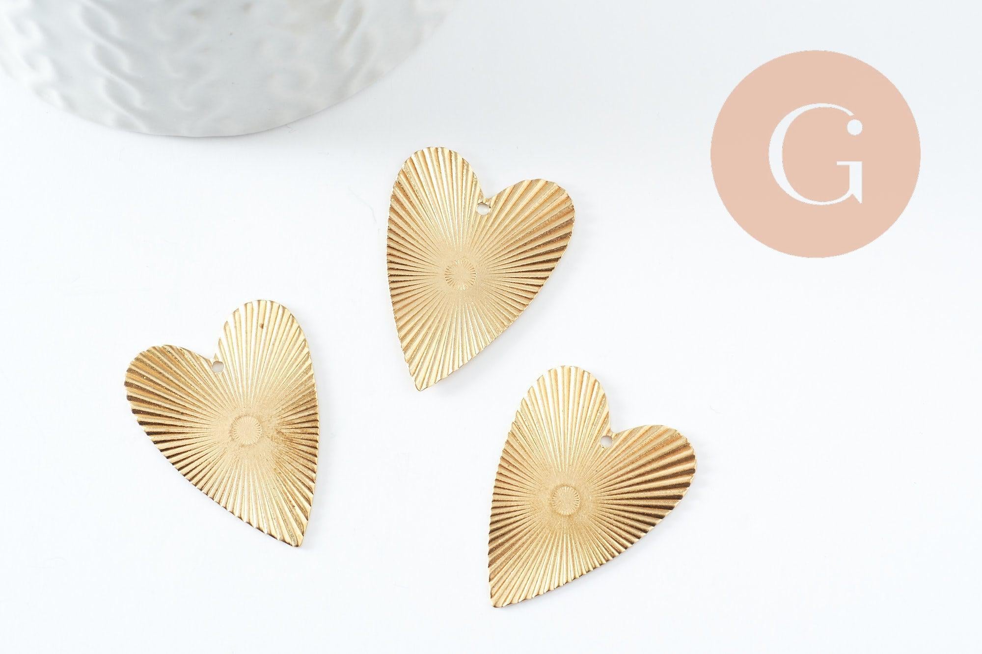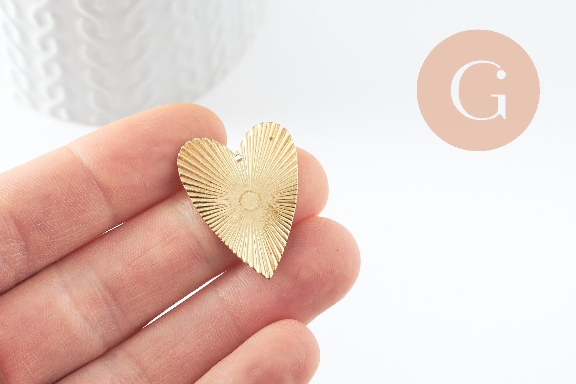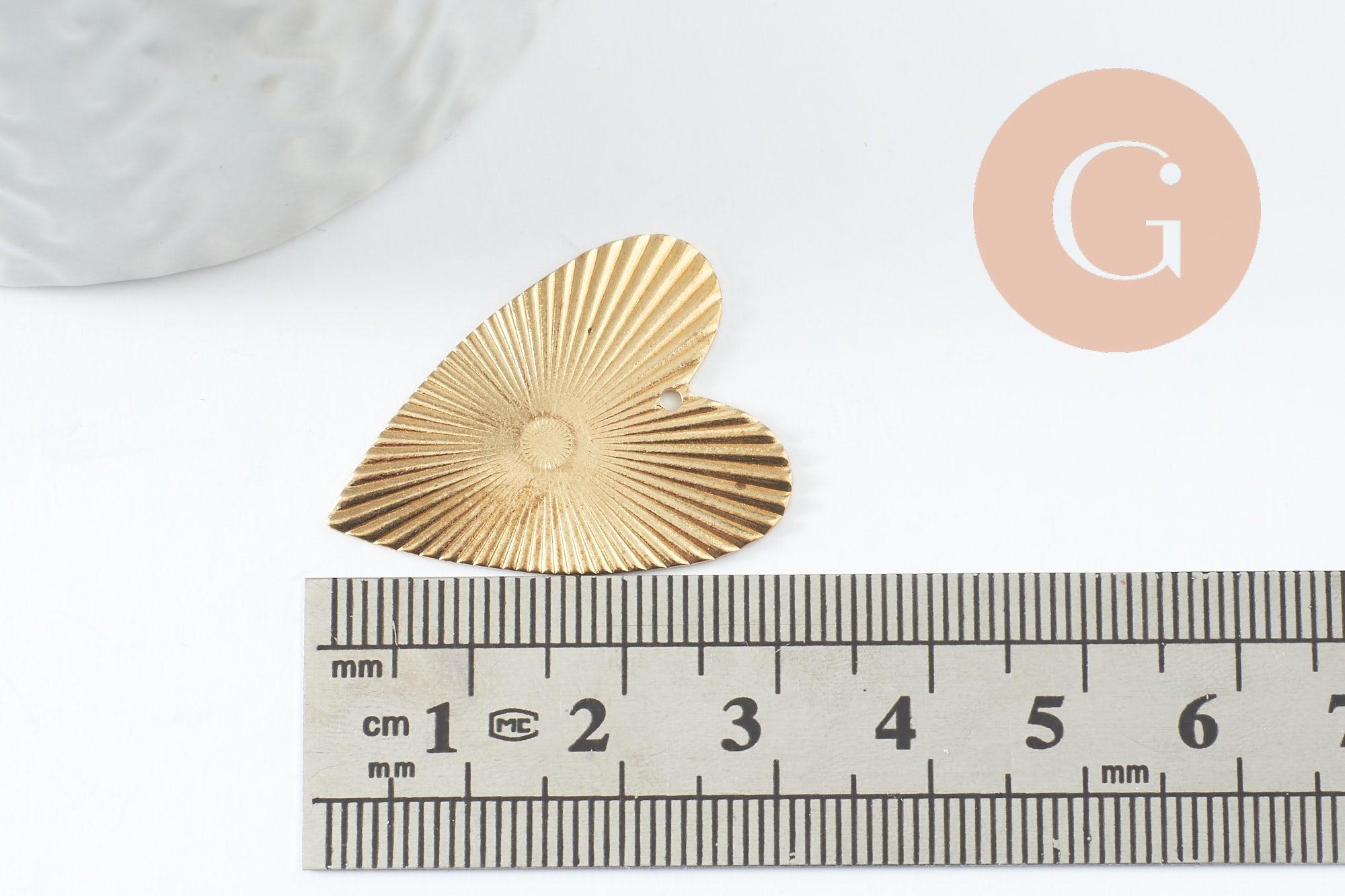 Pendentif coeur strié laiton brut 30mm, un délicat pendentif d'amour, x1 G9756