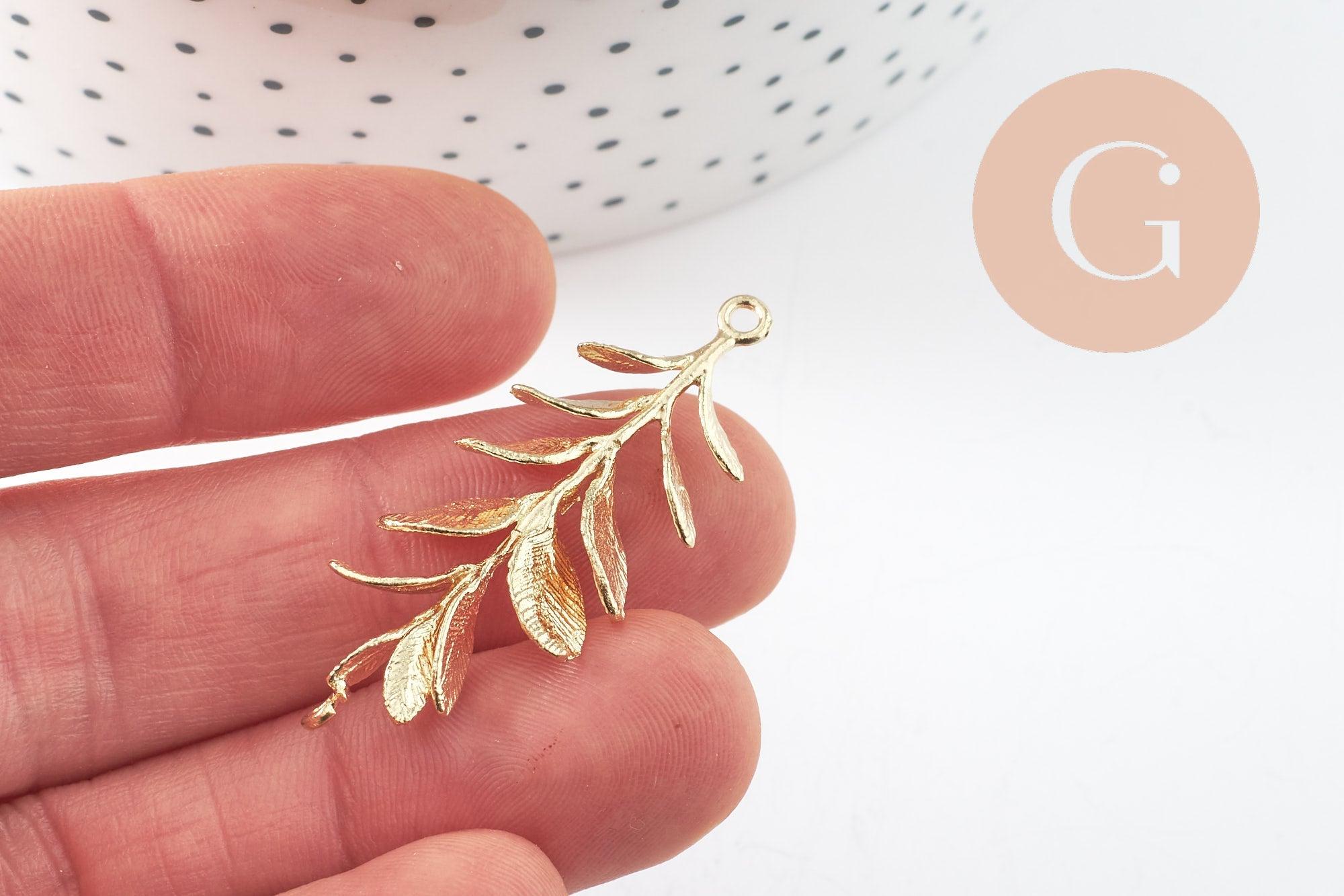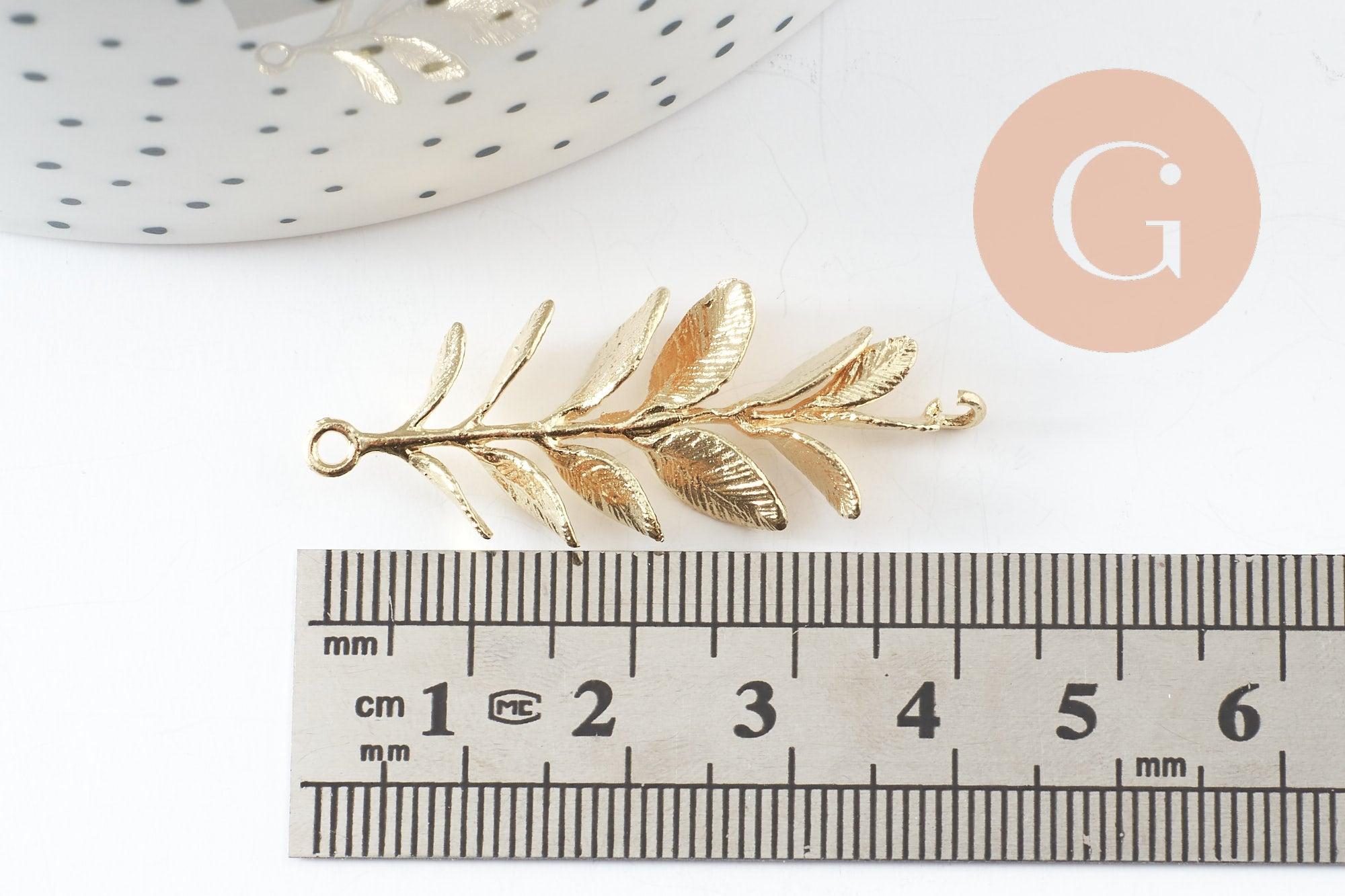 Colgante de hoja de laurel de latón, dije de latón crudo, joyería de hoja de laurel, colgante de latón crudo, 43 mm, x2 (G0432)