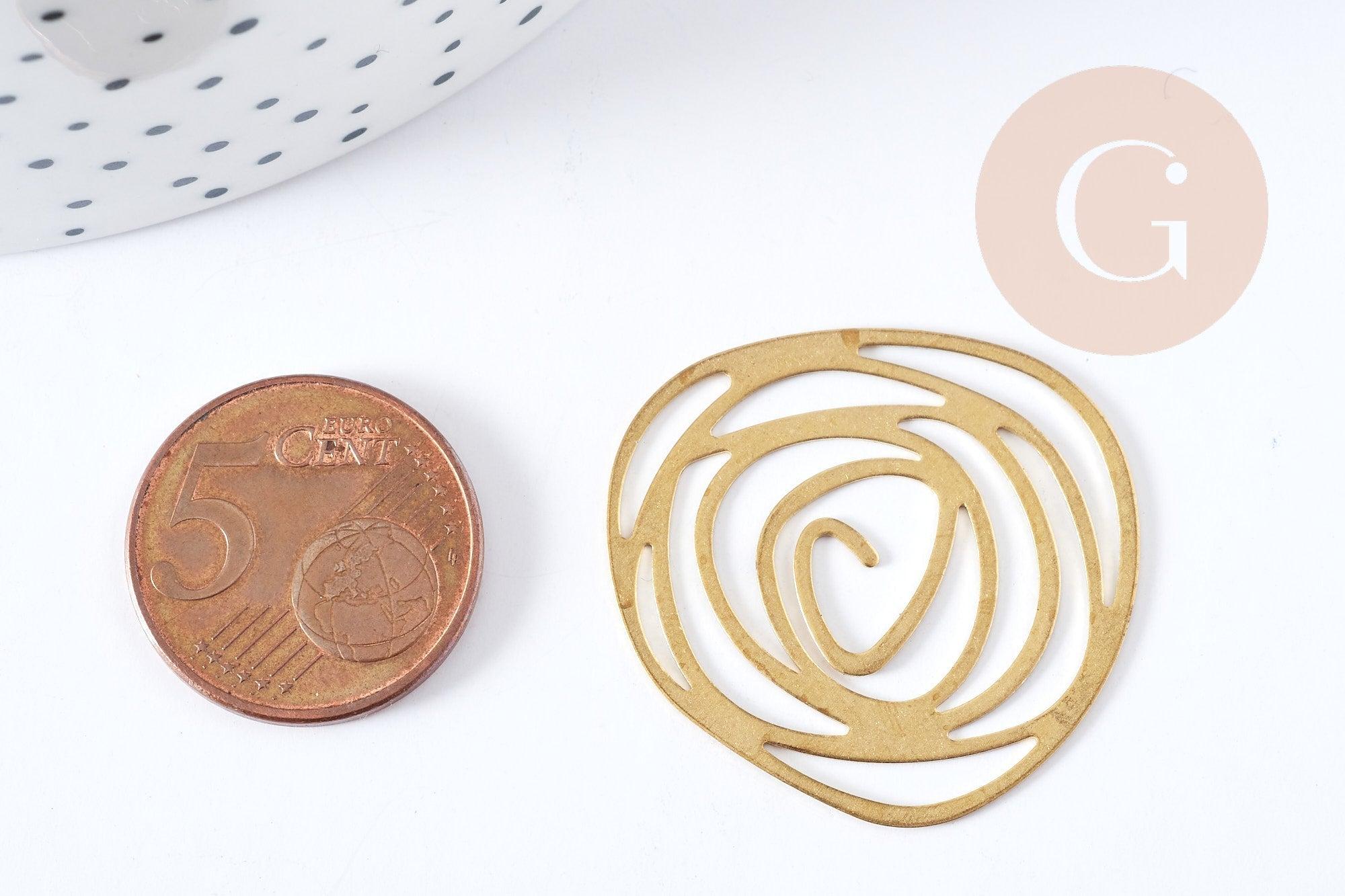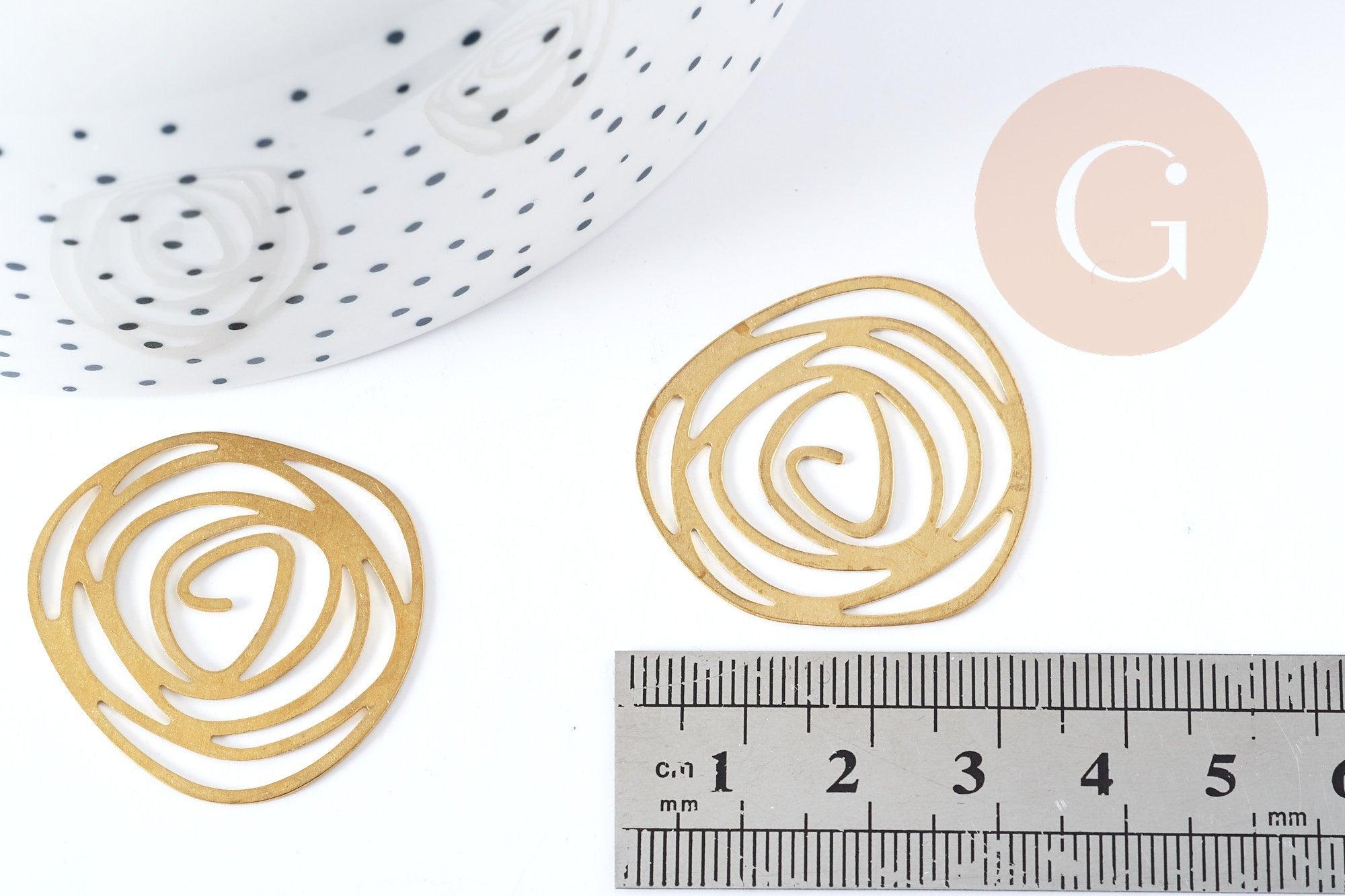 Pendentif Fleur Rose ajourée laiton brute 32mm, x1 (G8770)