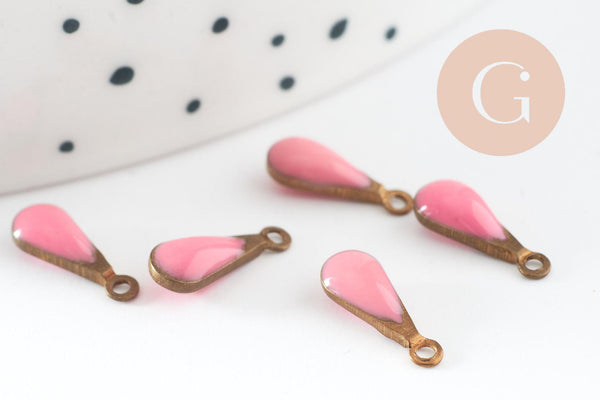 Colgante de gota de latón crudo con esmalte rosa, suministros creativos, latón bañado en oro, colgante de gota, creación de joyas, 11 mm, juego de 10