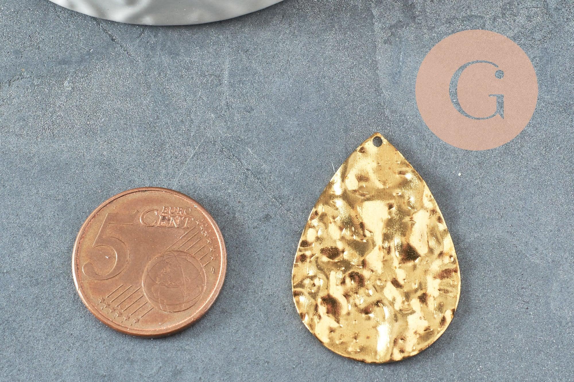 Colgante de latón dorado con forma de gota martillada, amuletos de latón en bruto sin níquel para la creación de joyas geométricas, 33x23 mm, juego de 2