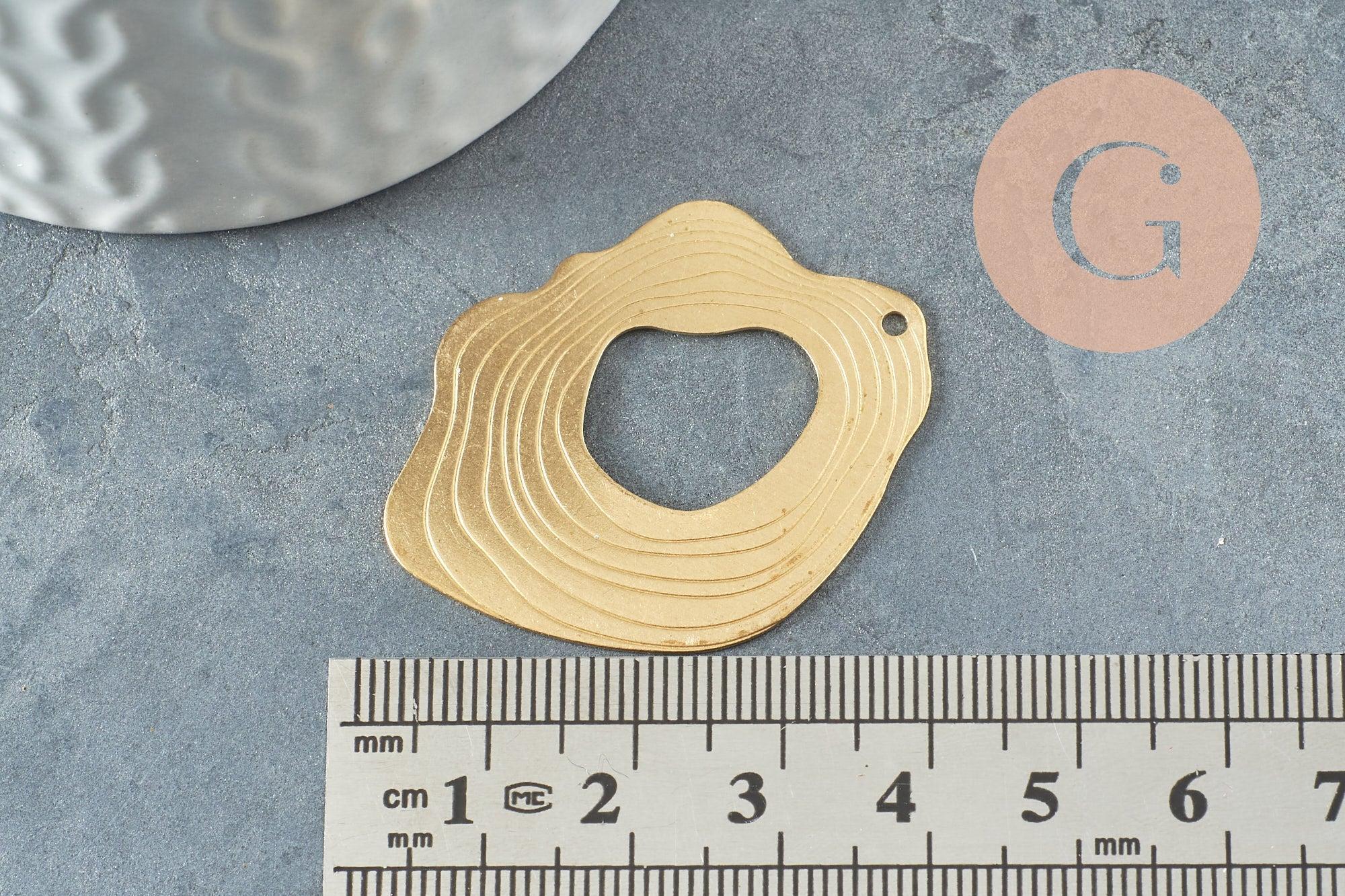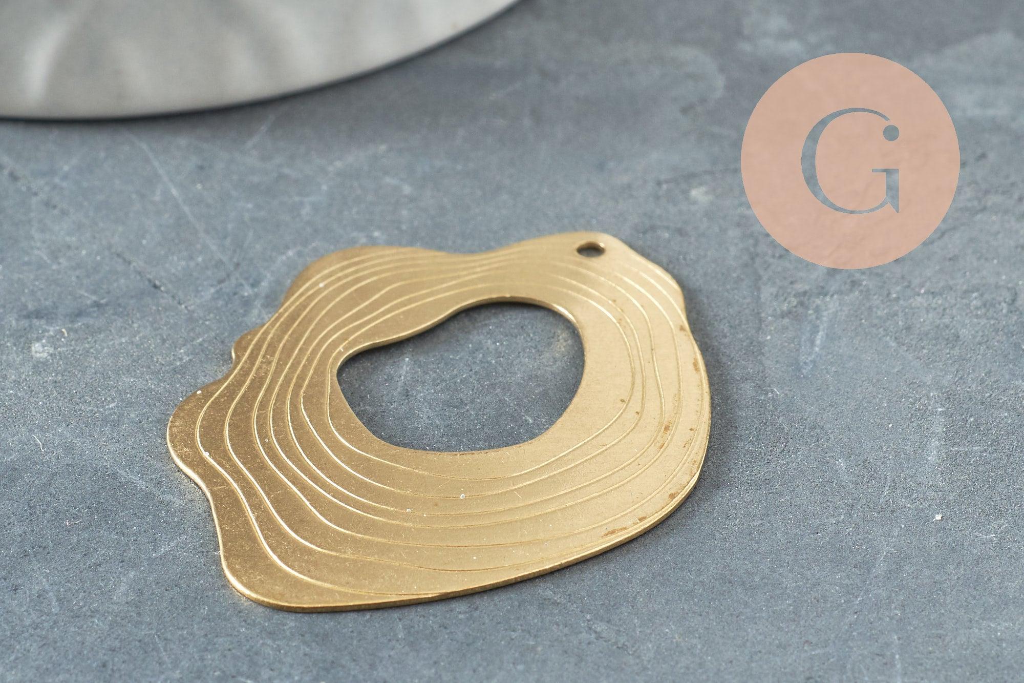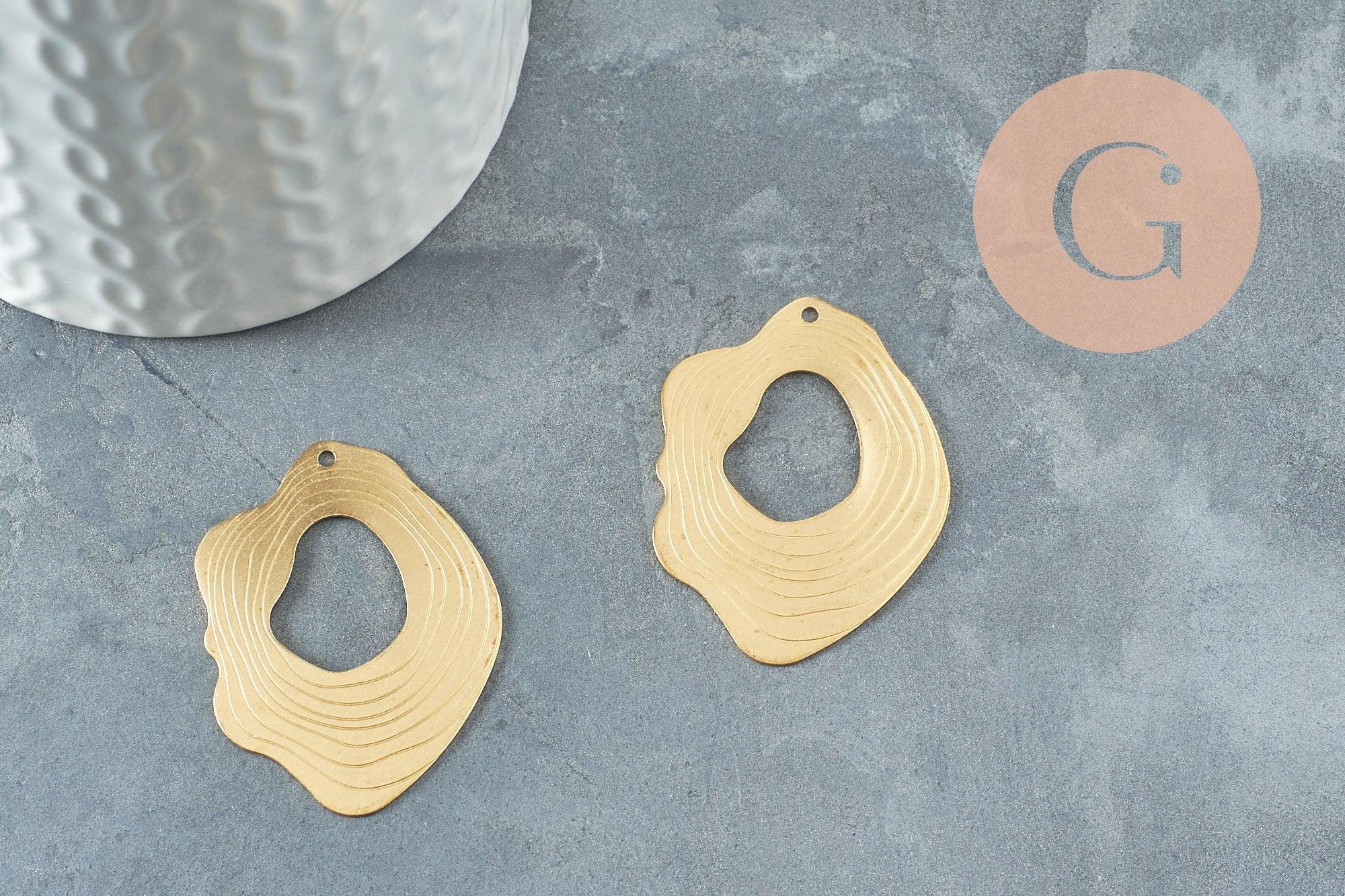 Pendentif laiton doré ovale vague striée 41mm, fourniture en laiton brut sans nickel pour création bijoux géométriques, X2 (G4682)