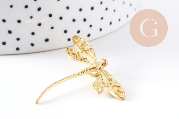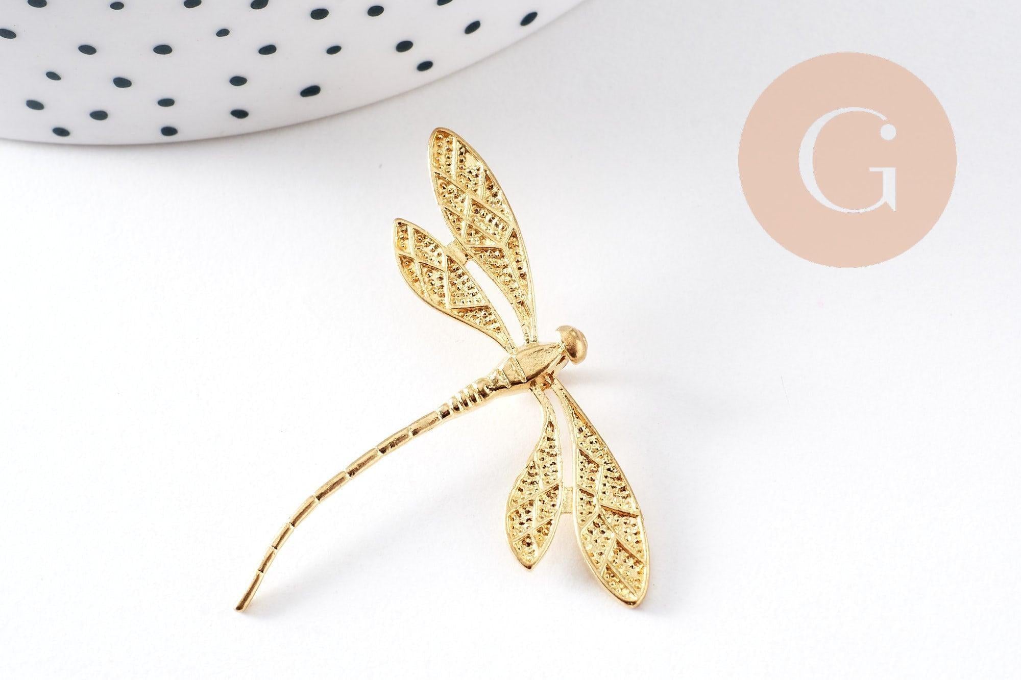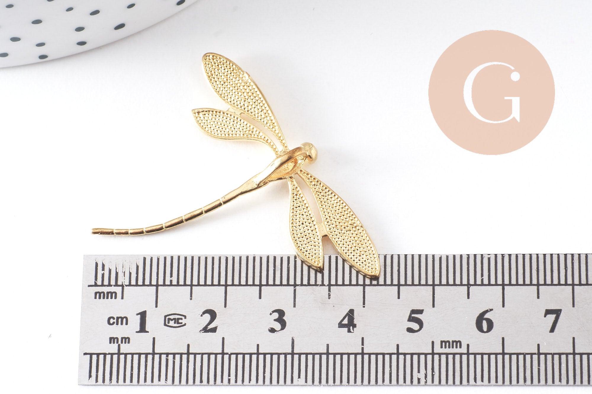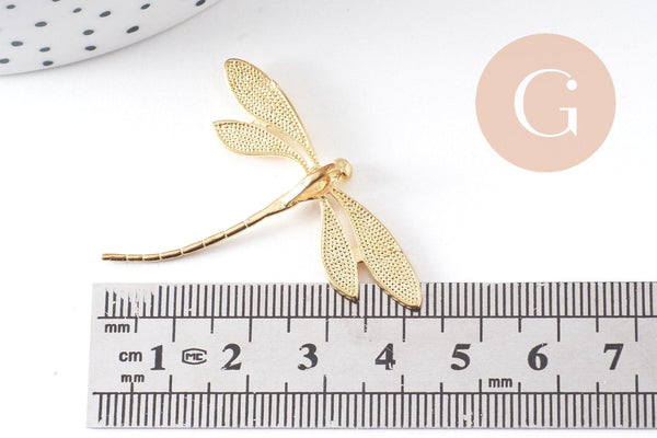Pendentif libellule laiton brut 43mm, fournitures bijoux, breloque laiton brut, pendentif laiton brut, x2 (G1481)