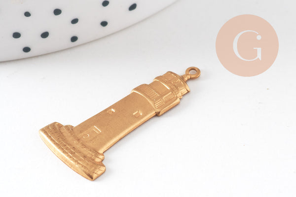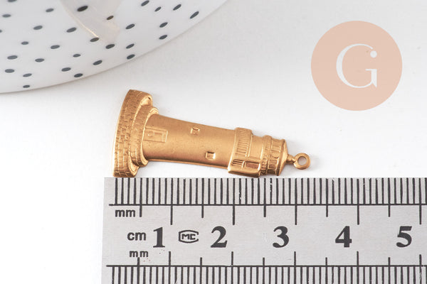Un bonito colgante de un faro de latón, ideal para crear un collar sobre temática náutica, barcos, mar y otros fondos.