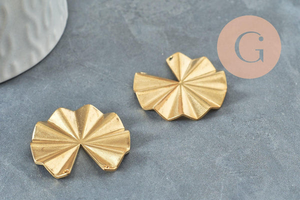 Colgante redondo de abanico plegado de latón crudo, colgante de latón crudo bañado en oro sin níquel, 30 mm, X2 (G3184)