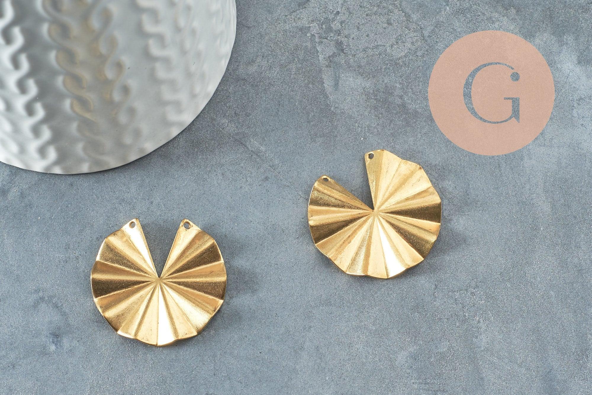 Colgante redondo abanico plegado latón crudo, colgante con imprimación dorada sin níquel en latón crudo, 30 mm, juego de 2