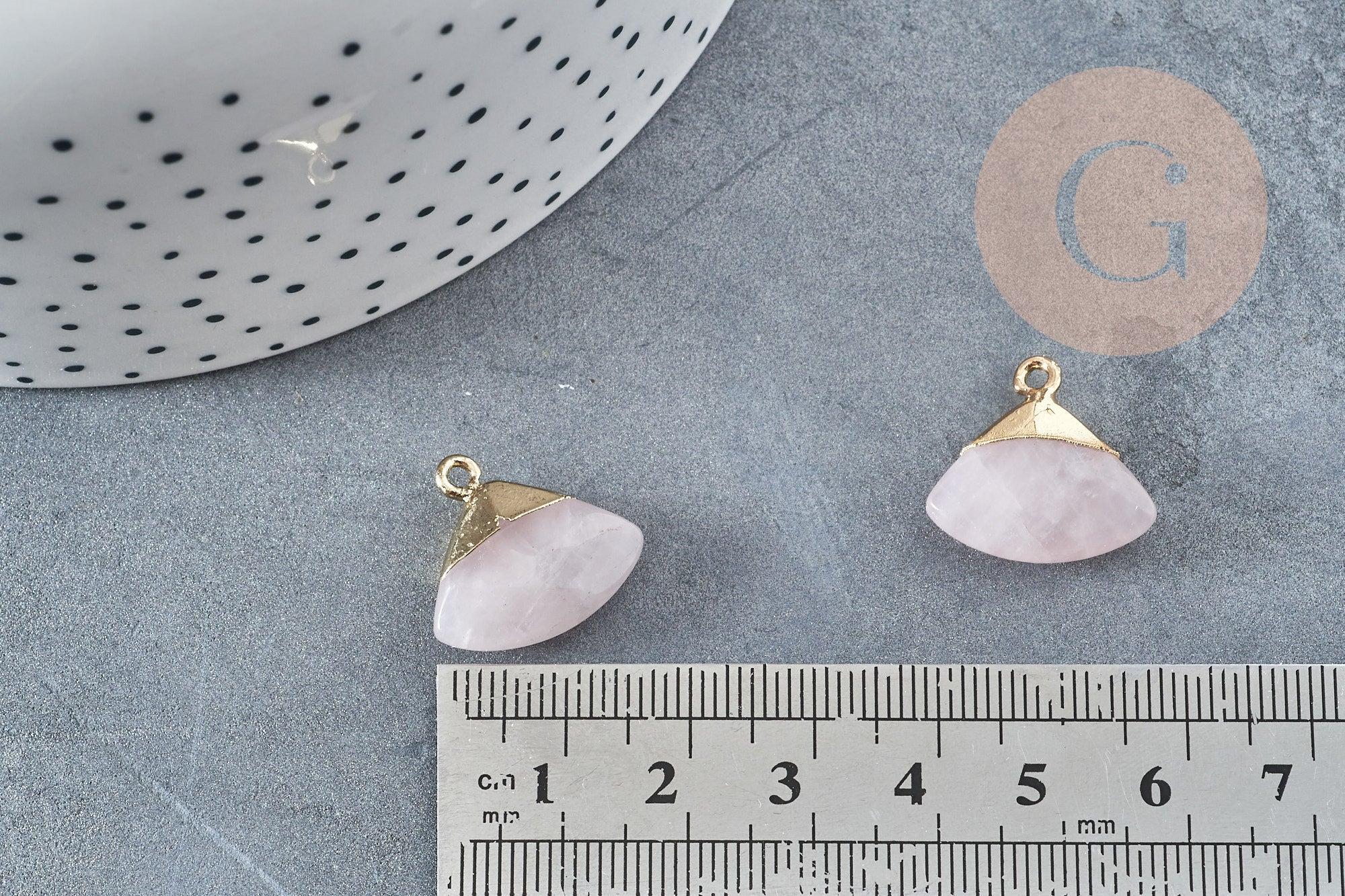 Colgante triángulo cuarzo rosa natural y latón dorado 17mm, colgante creación joyería piedra x1 G9098