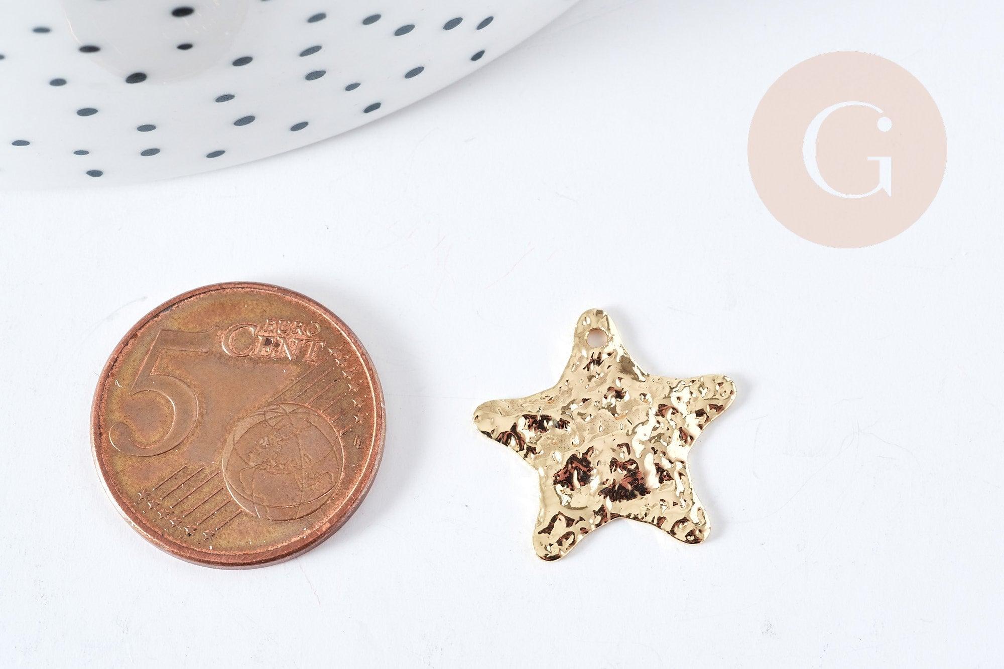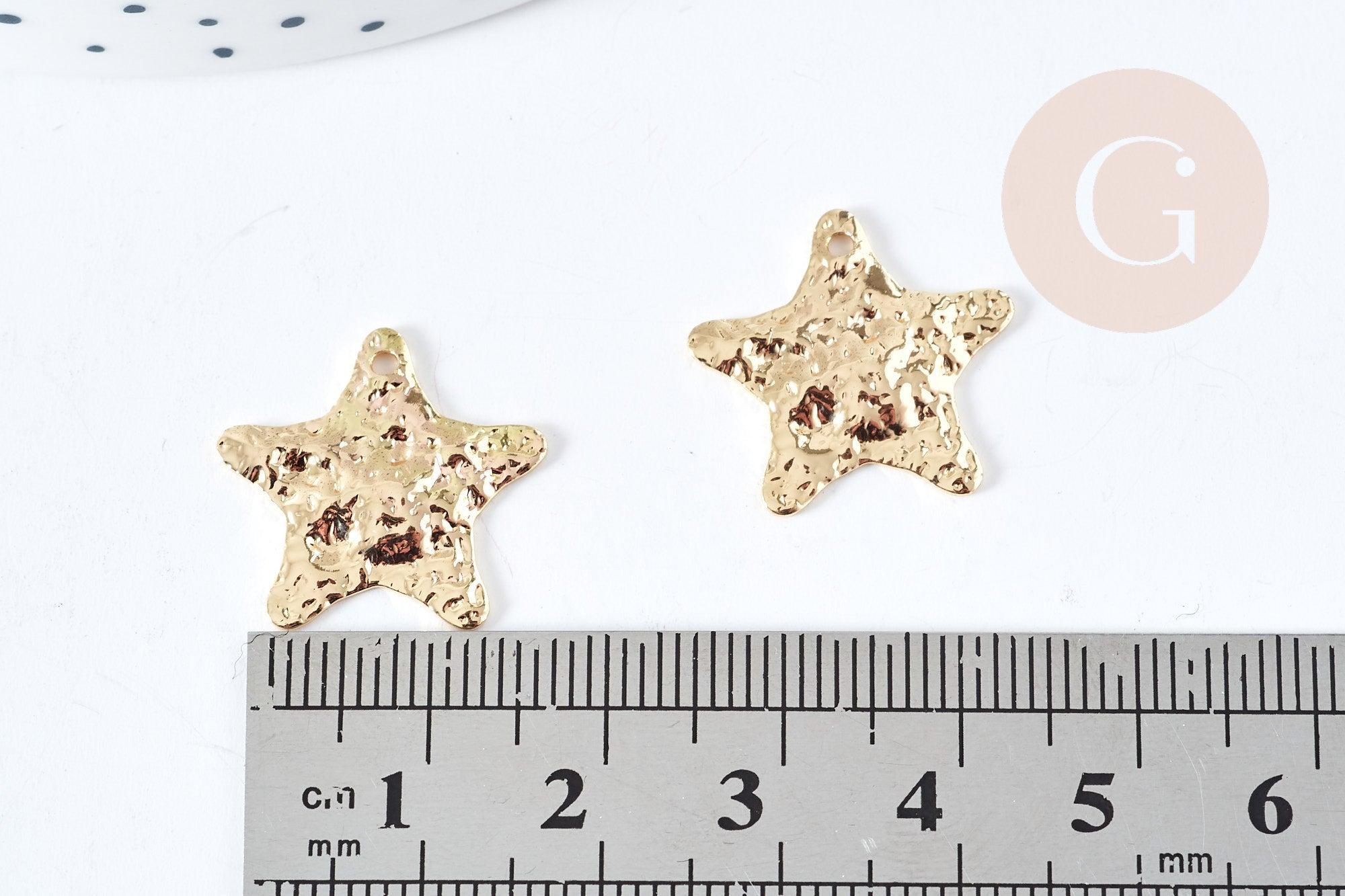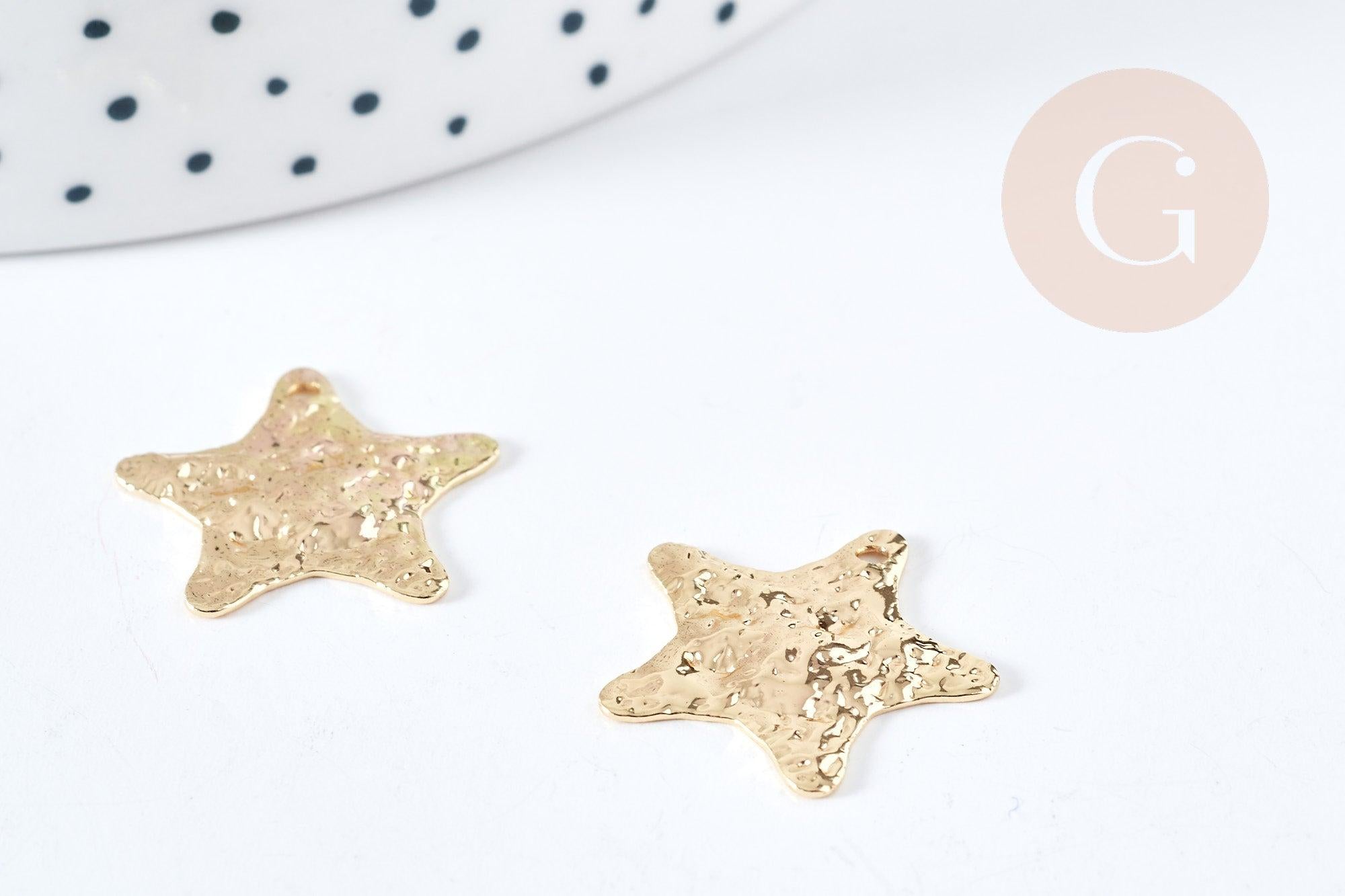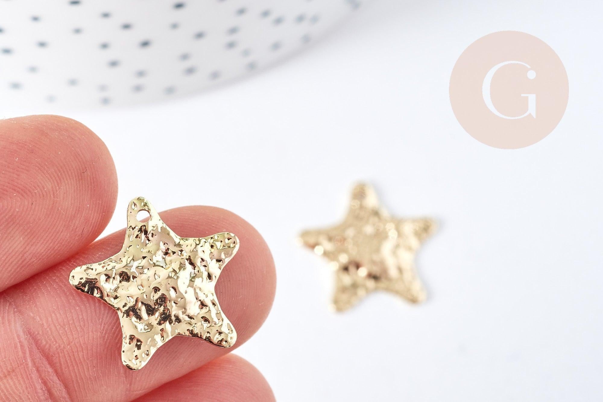 Crea multitud de creaciones de bisutería con este colgante en forma de estrella de latón bañado en oro martillado, ideal para creaciones originales.
