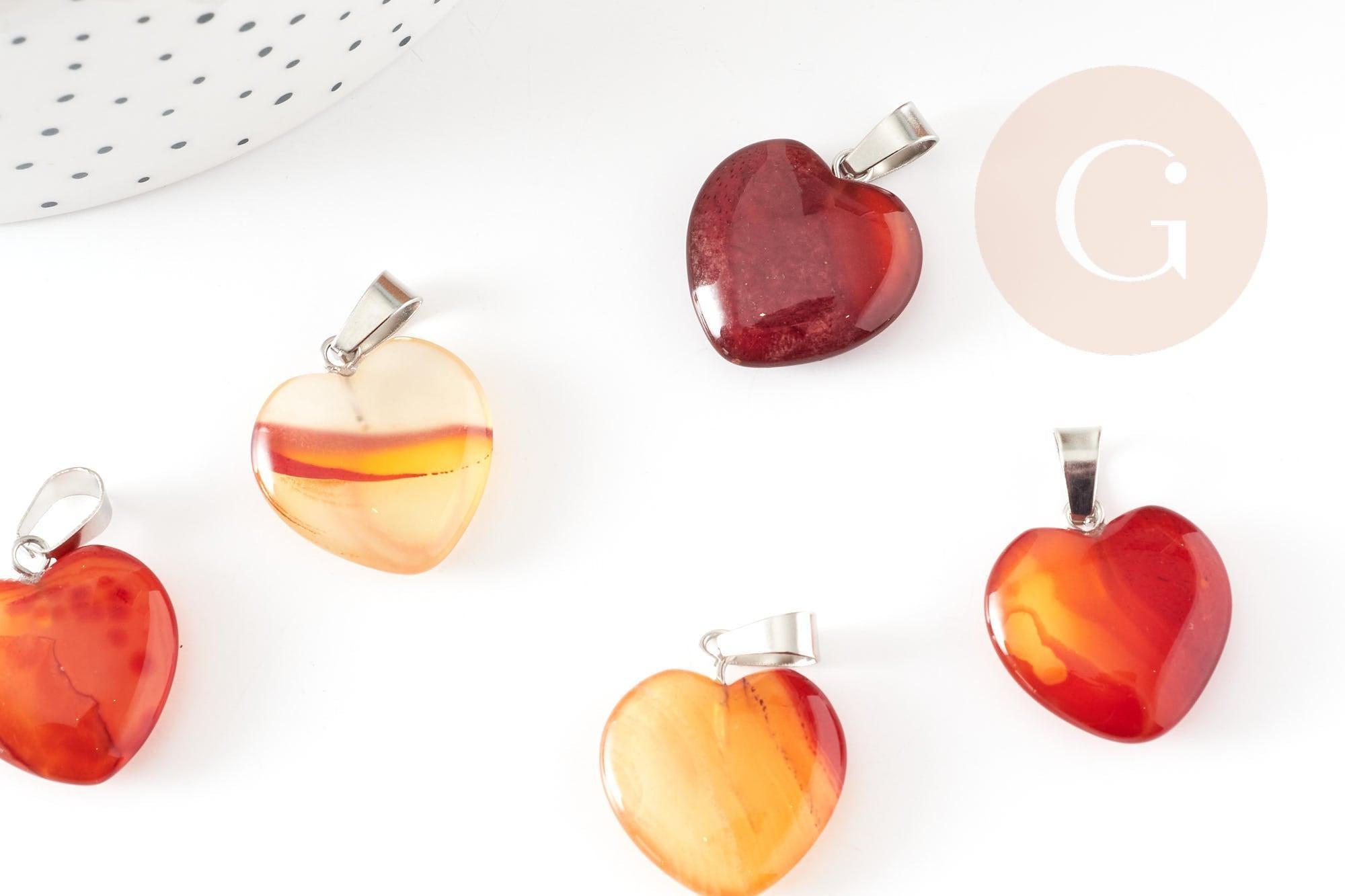 Déjate seducir por este encantador colgante de corazón de ágata naranja natural y latón platino para lucir alrededor de tu cuello o en tus orejas.