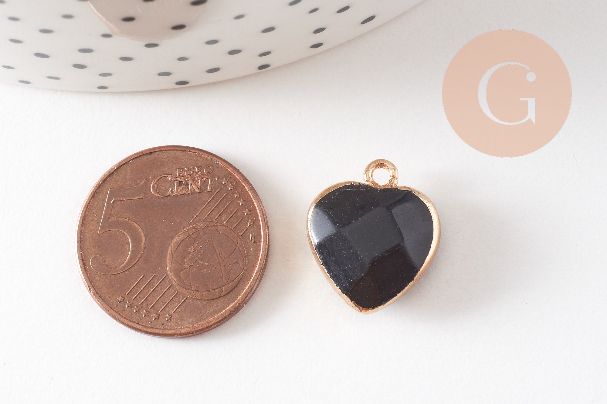 Elegante y atemporal, este colgante en forma de corazón, tallado en jade natural negro facetado, es un artículo imprescindible para creaciones refinadas.