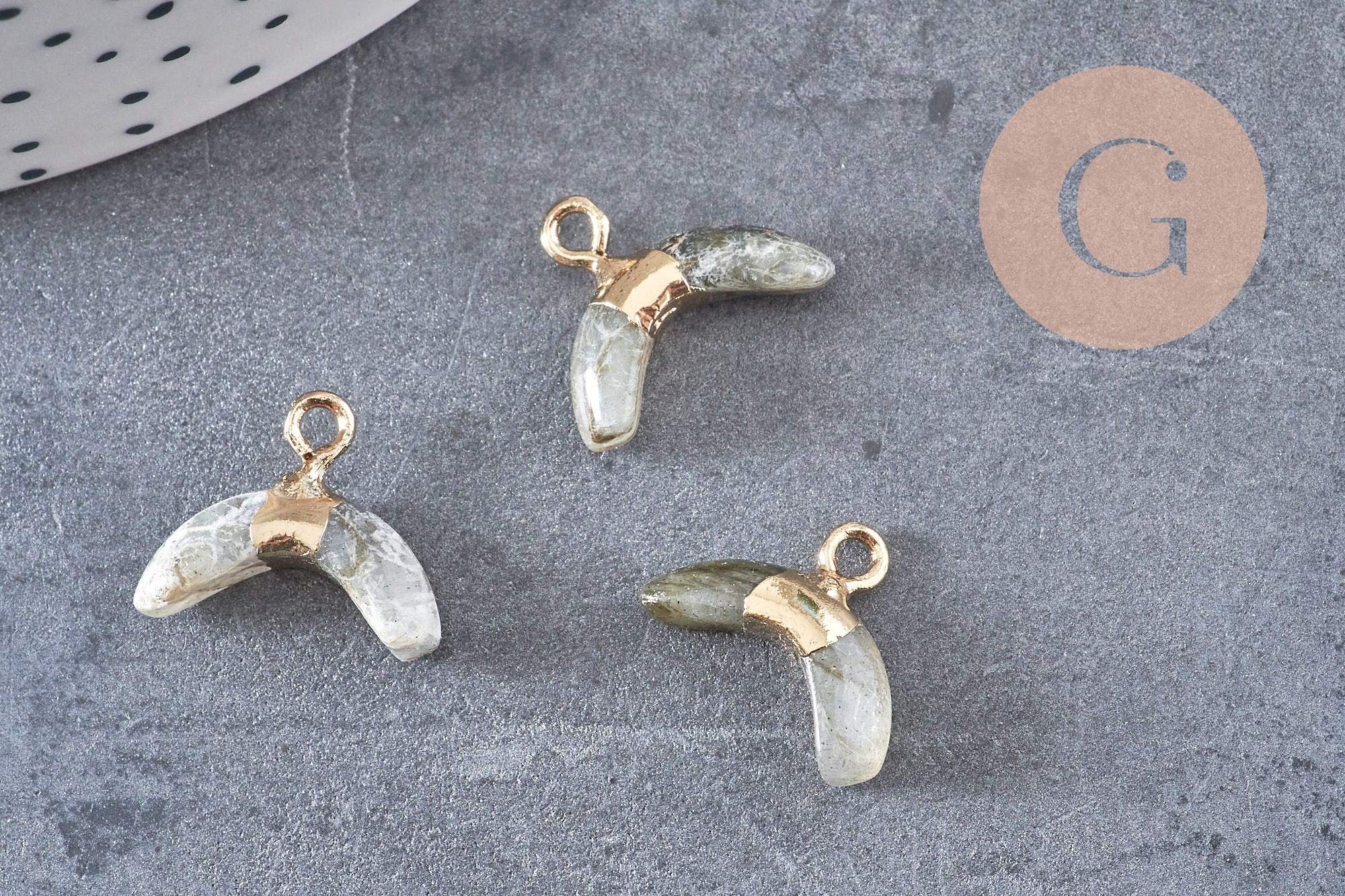Colgante de cuerno de labradorita, suministros creativos, colgante de joyería, luna de labradorita, joyería de piedra, colgante de piedra, labradorita natural, 21 mm