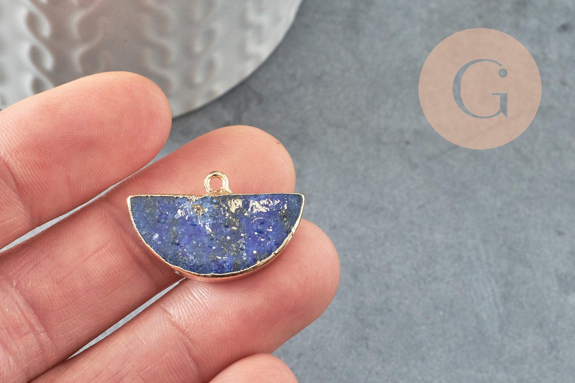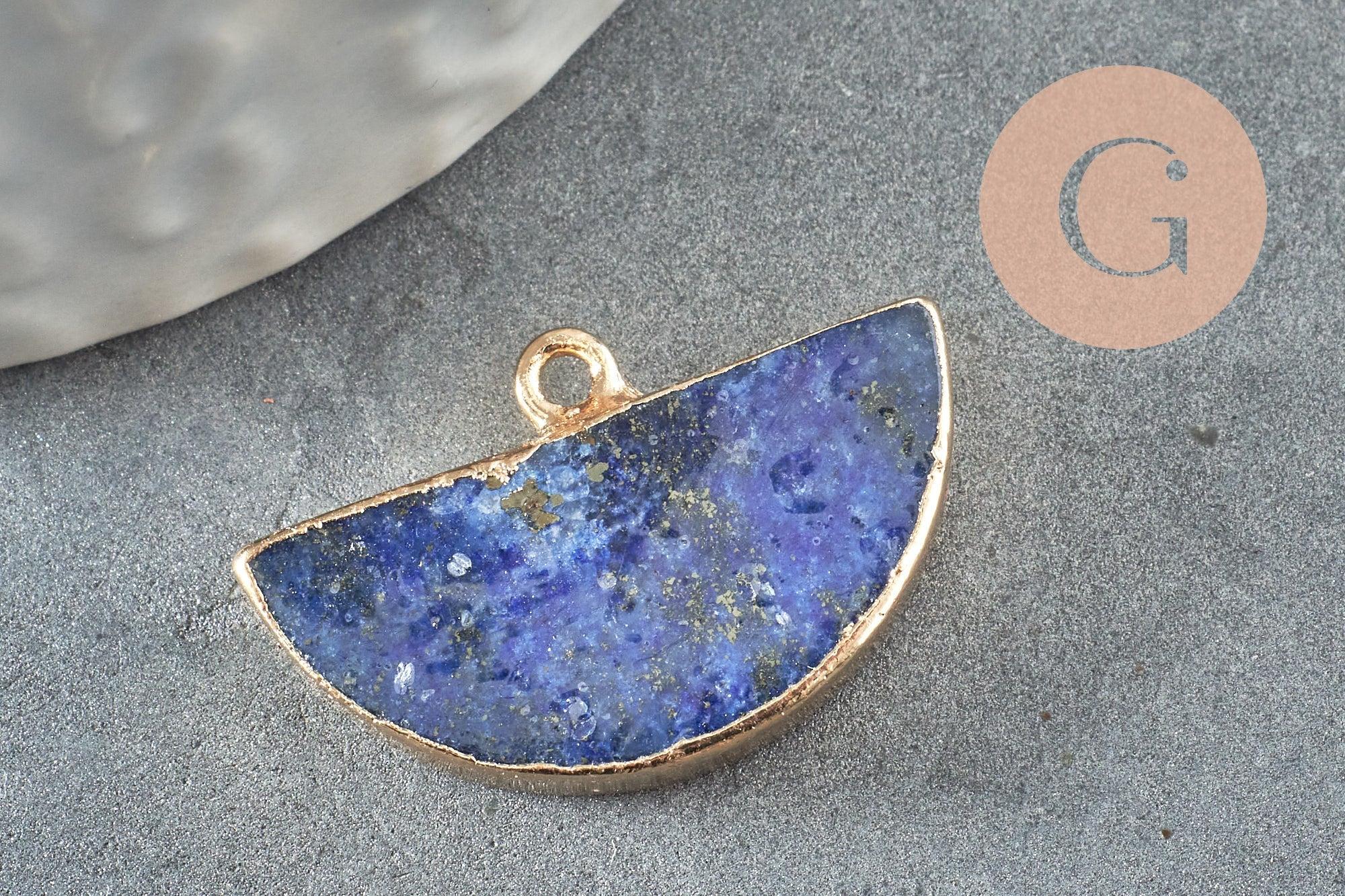 Colgante media luna lapislázuli natural hierro dorado 27mm, Colgante creación joyería piedra natural x1 G3941