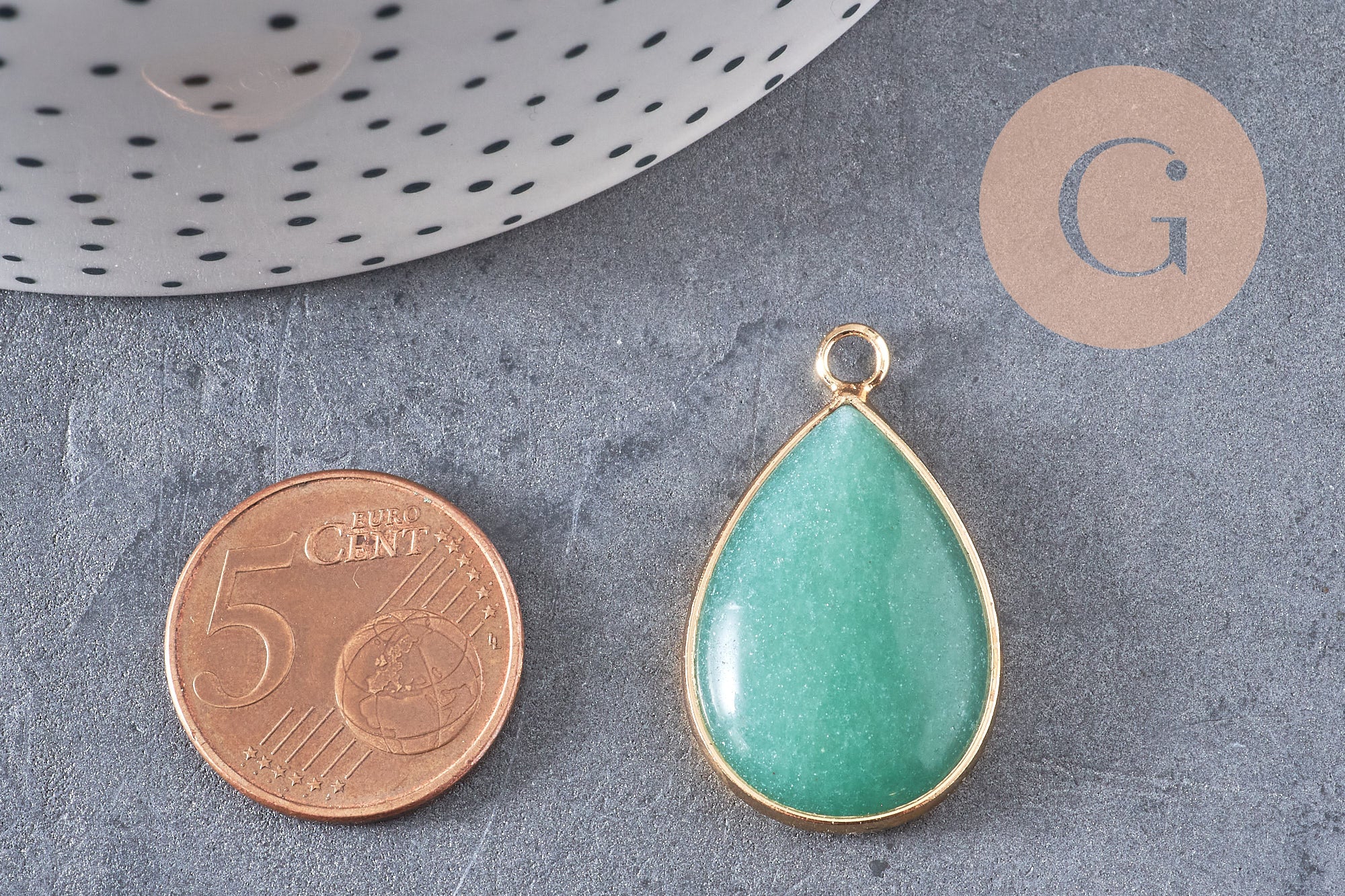Pendentif goutte aventurine verte naturelle fer doré 31mm, x1 (G2333)