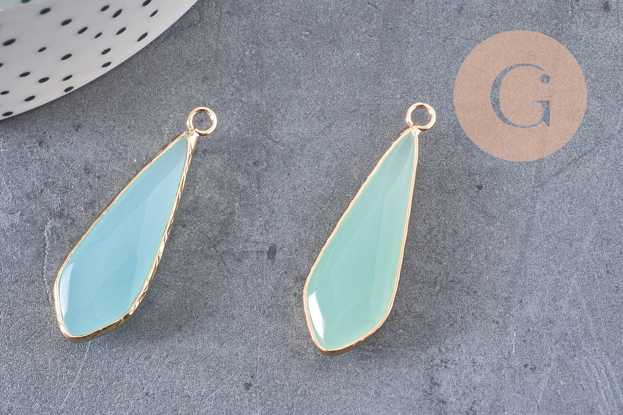 Colgante gota de jade verde turquesa dorado, colgante de piedra, jade natural, jade verde, 36mm, x1 G2724