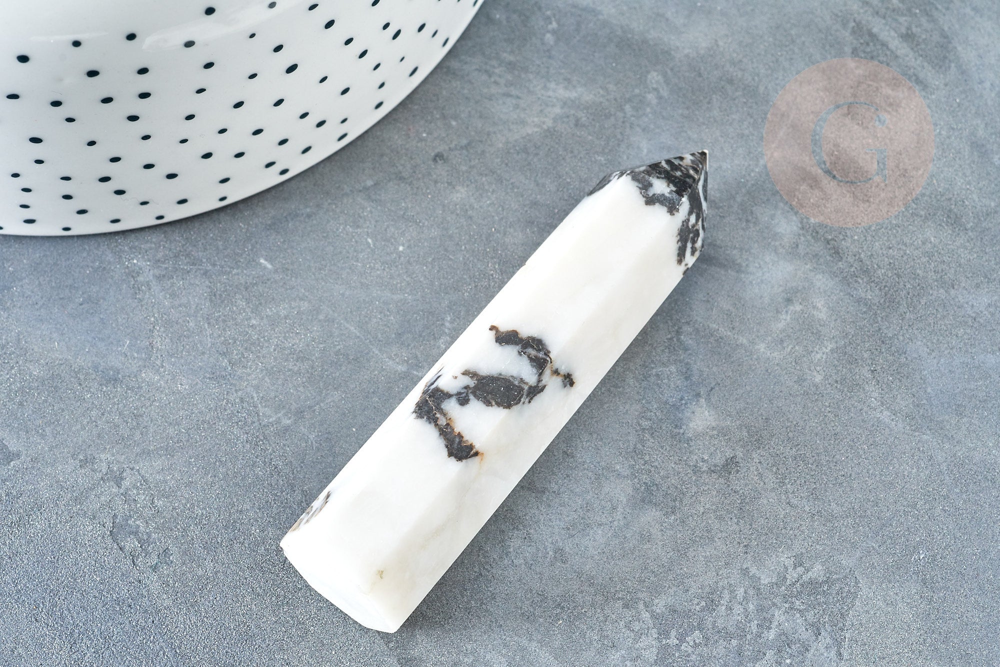 Punta de jaspe zabra natural de 70-80 mm, piedra natural para sesión de litoterapia, x1 (G8410)