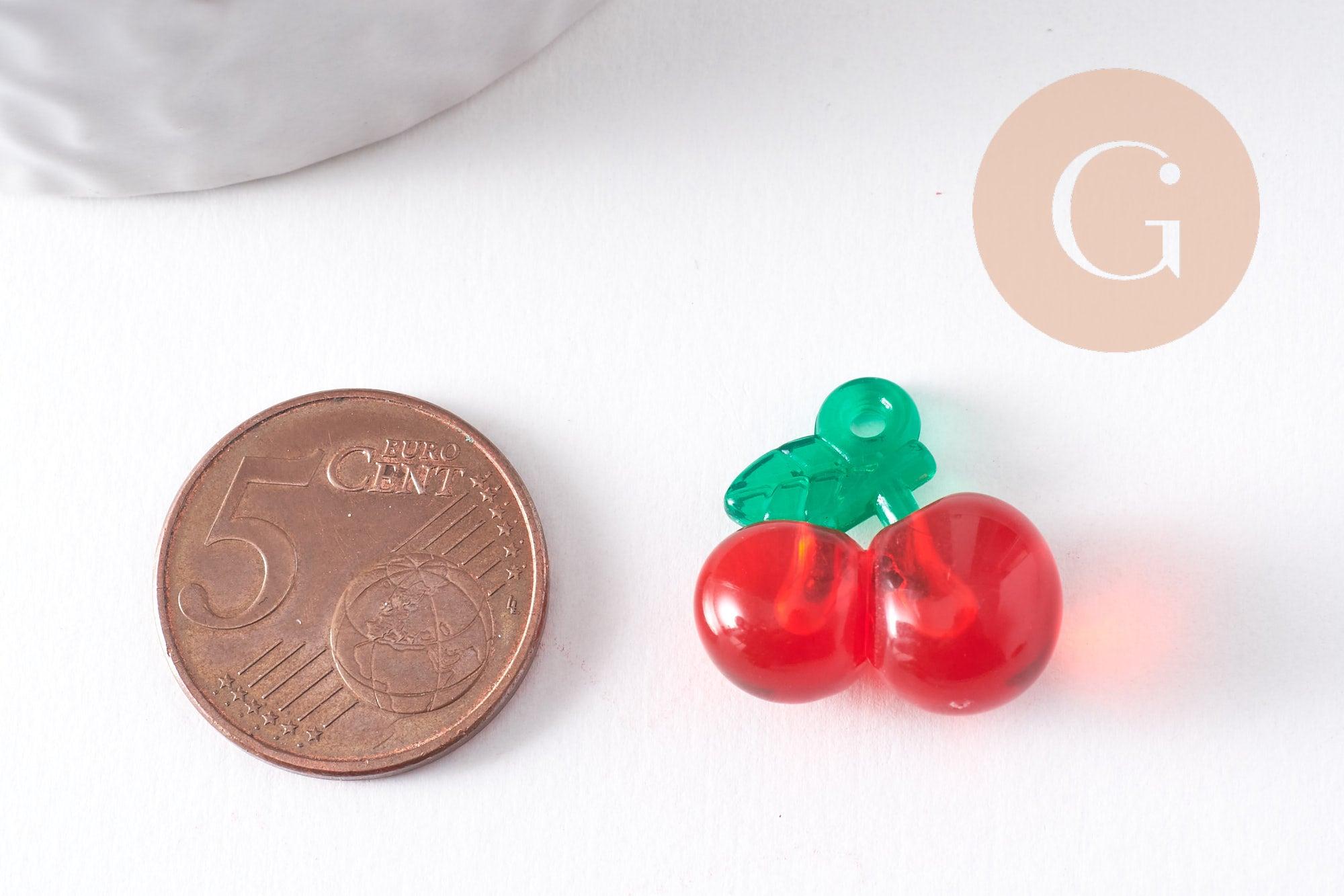 Pendentif cerise résine rouge et verte 19mm, x2 (G10340)