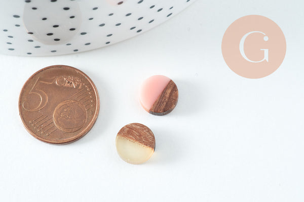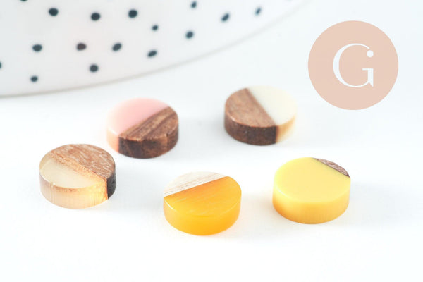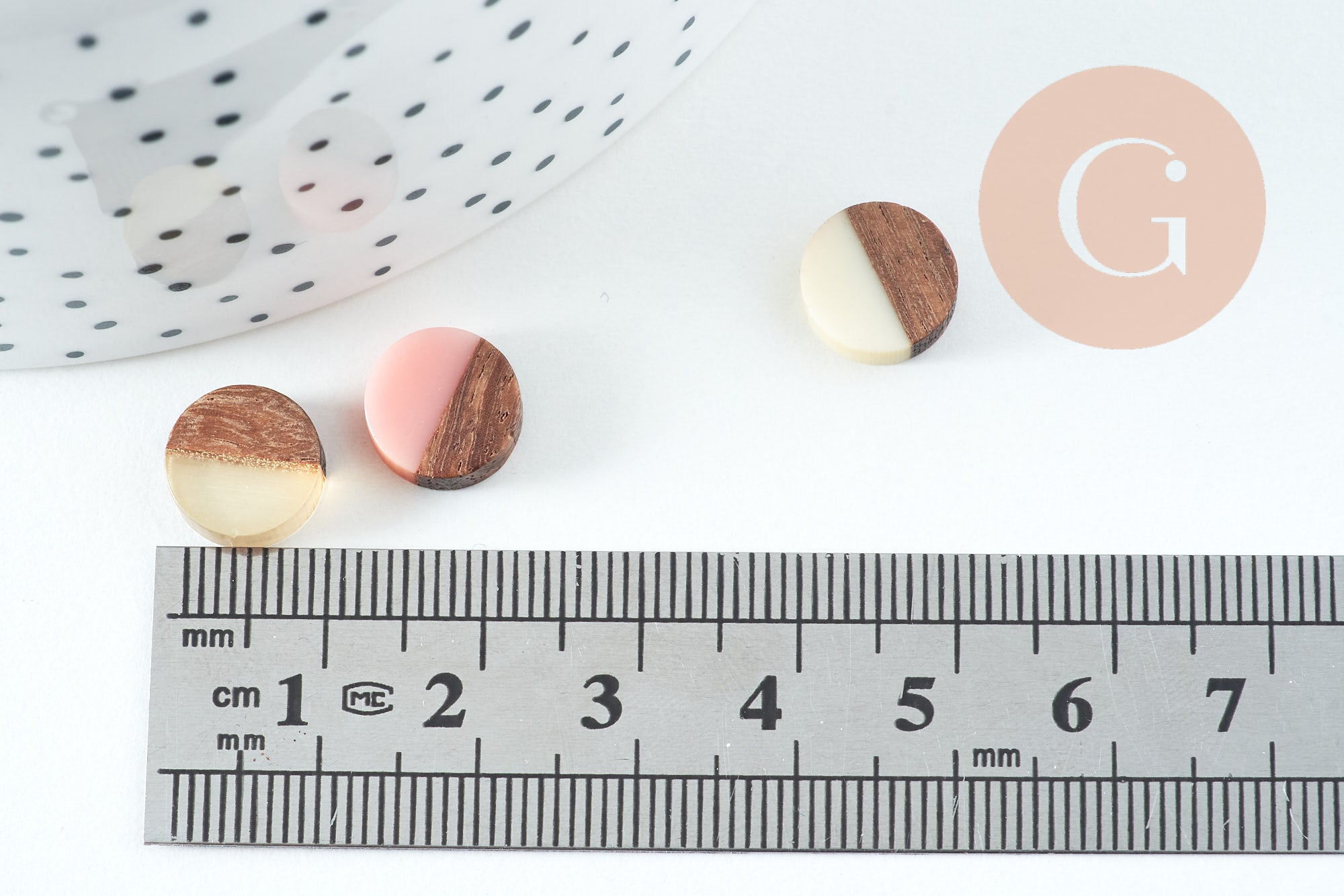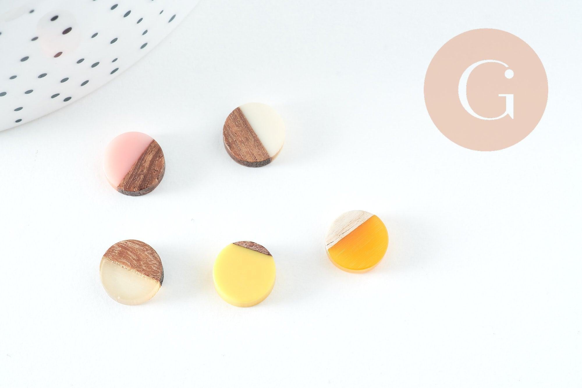 pendentif disque bois résine, bois naturel, perles bois, Perles géométriques,perle ronde,perle ronde bois création bijoux bois,10mm, x5 G0331