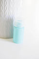 Cuentas redondas planas de polímero de color azul turquesa claro.