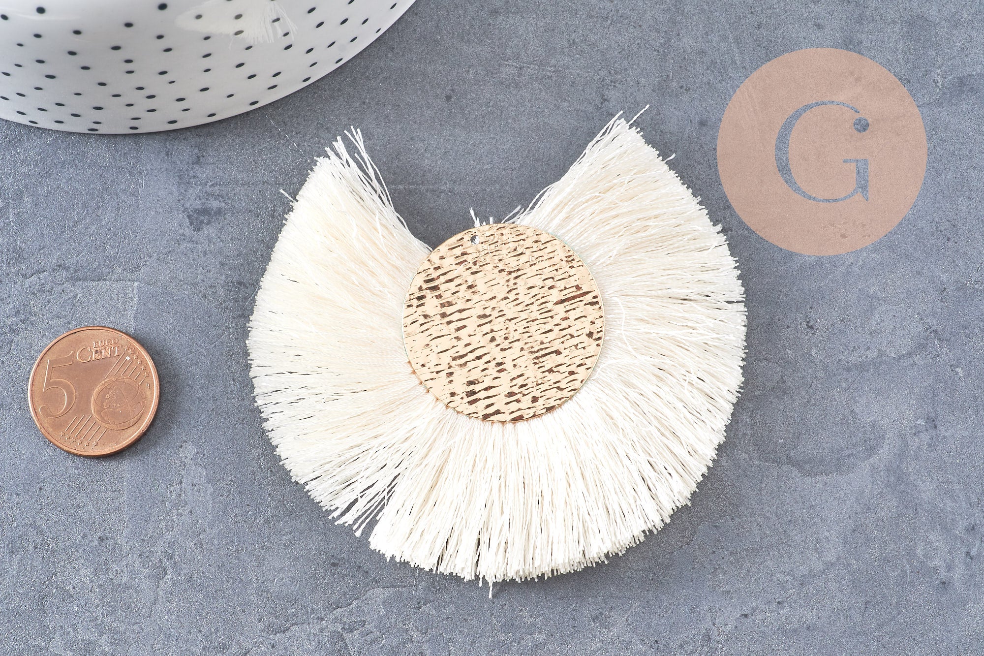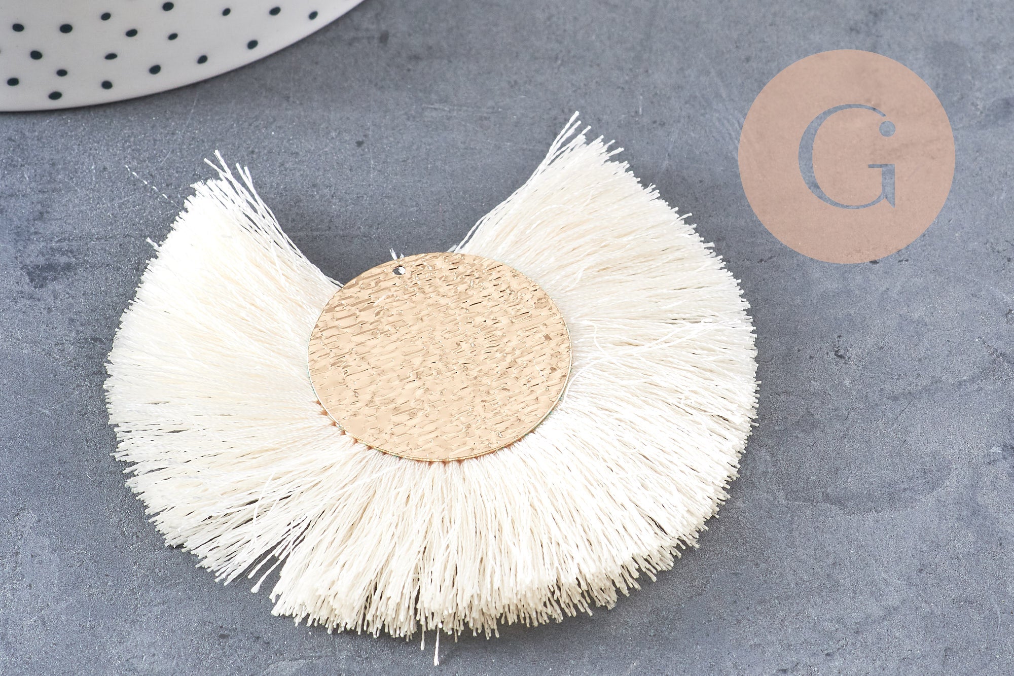 Colgante grande con borla en alambre blanco, crudo y dorado con engaste chapado en oro, diseño de pendiente, colgante de alambre dorado, 70-80 mm, x 2 (G4531)