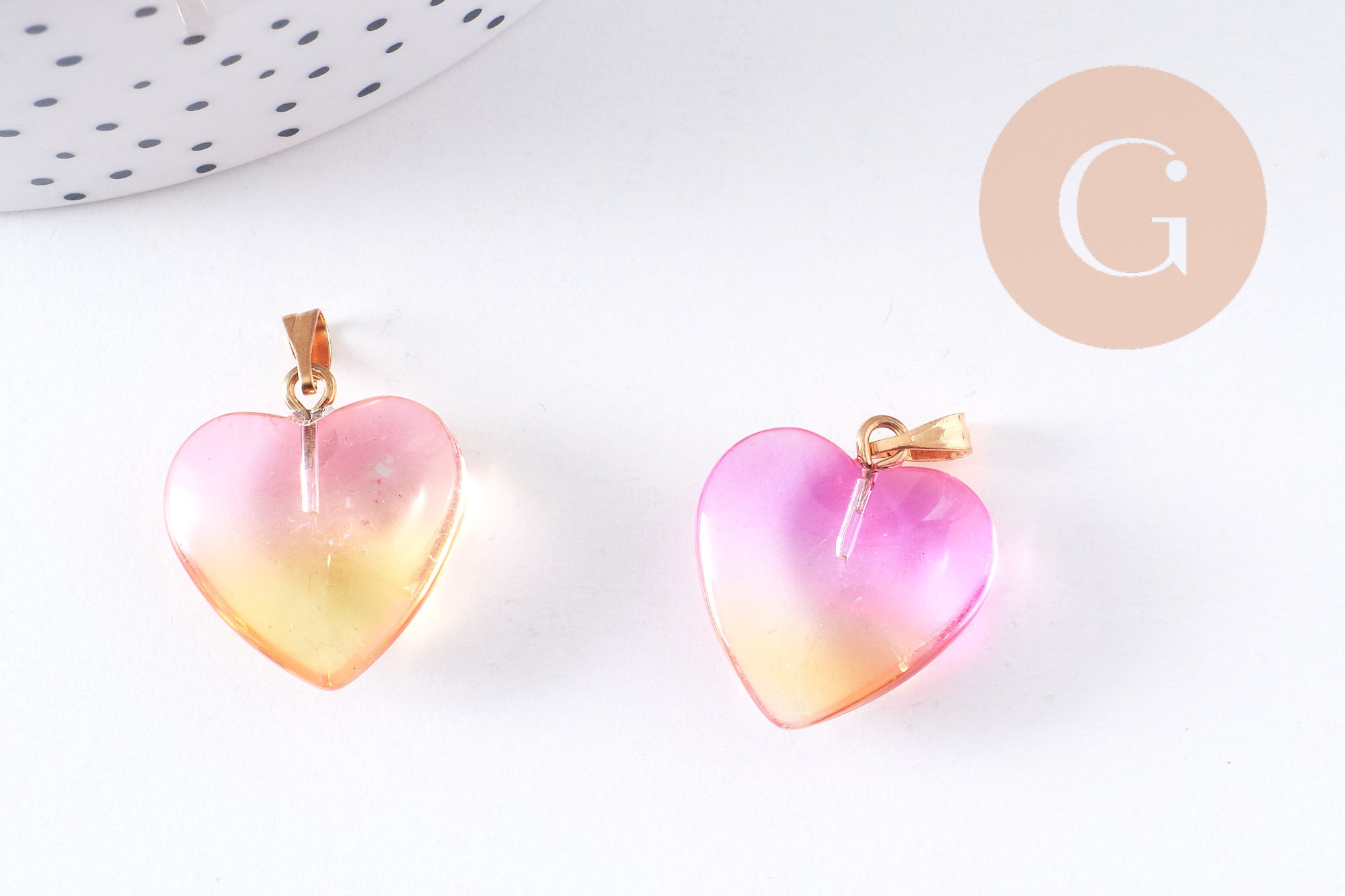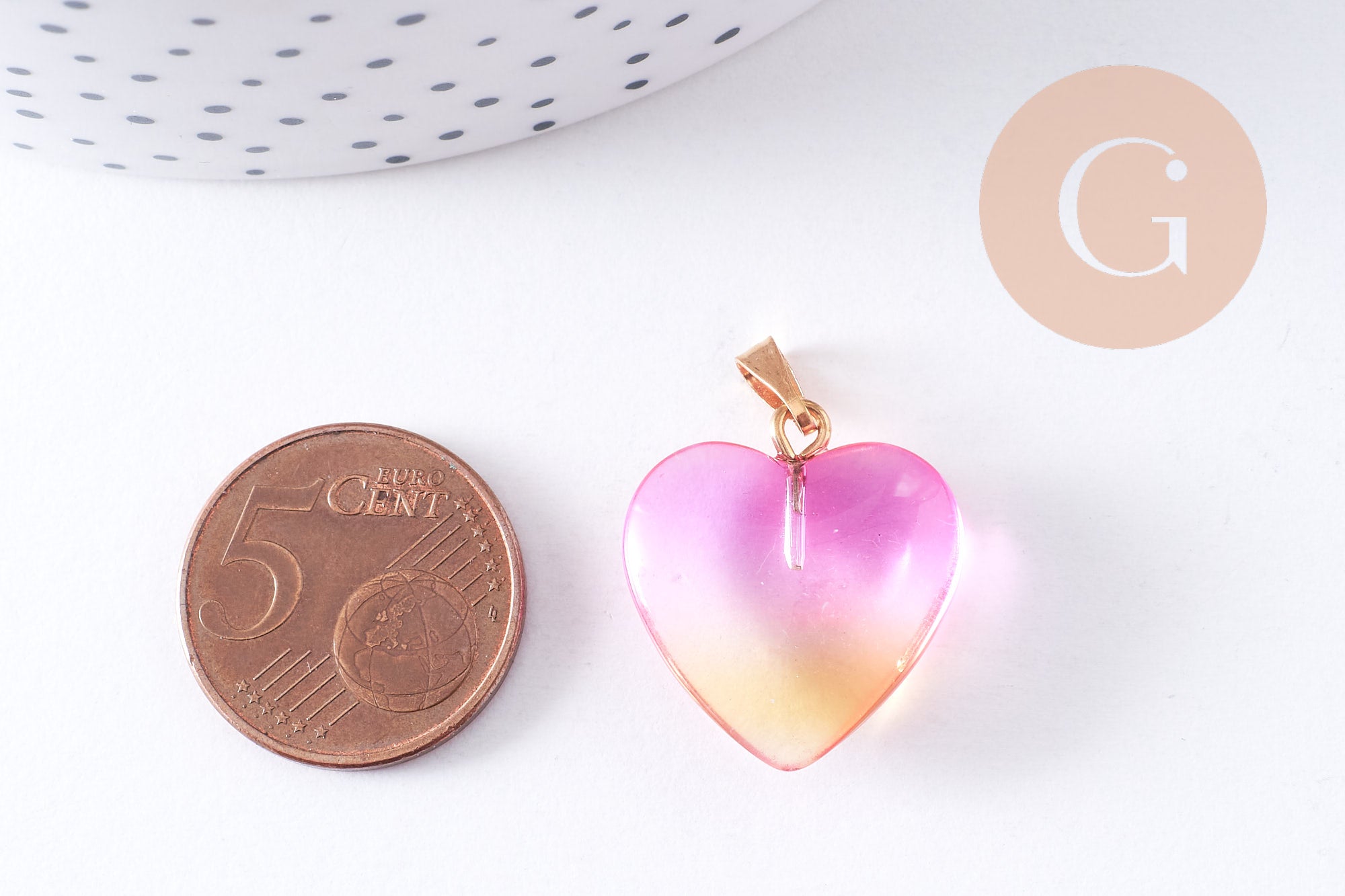 Colgante de corazón de cristal transparente amarillo rosa, dorado y hierro, 22 mm (x1) (G10621)