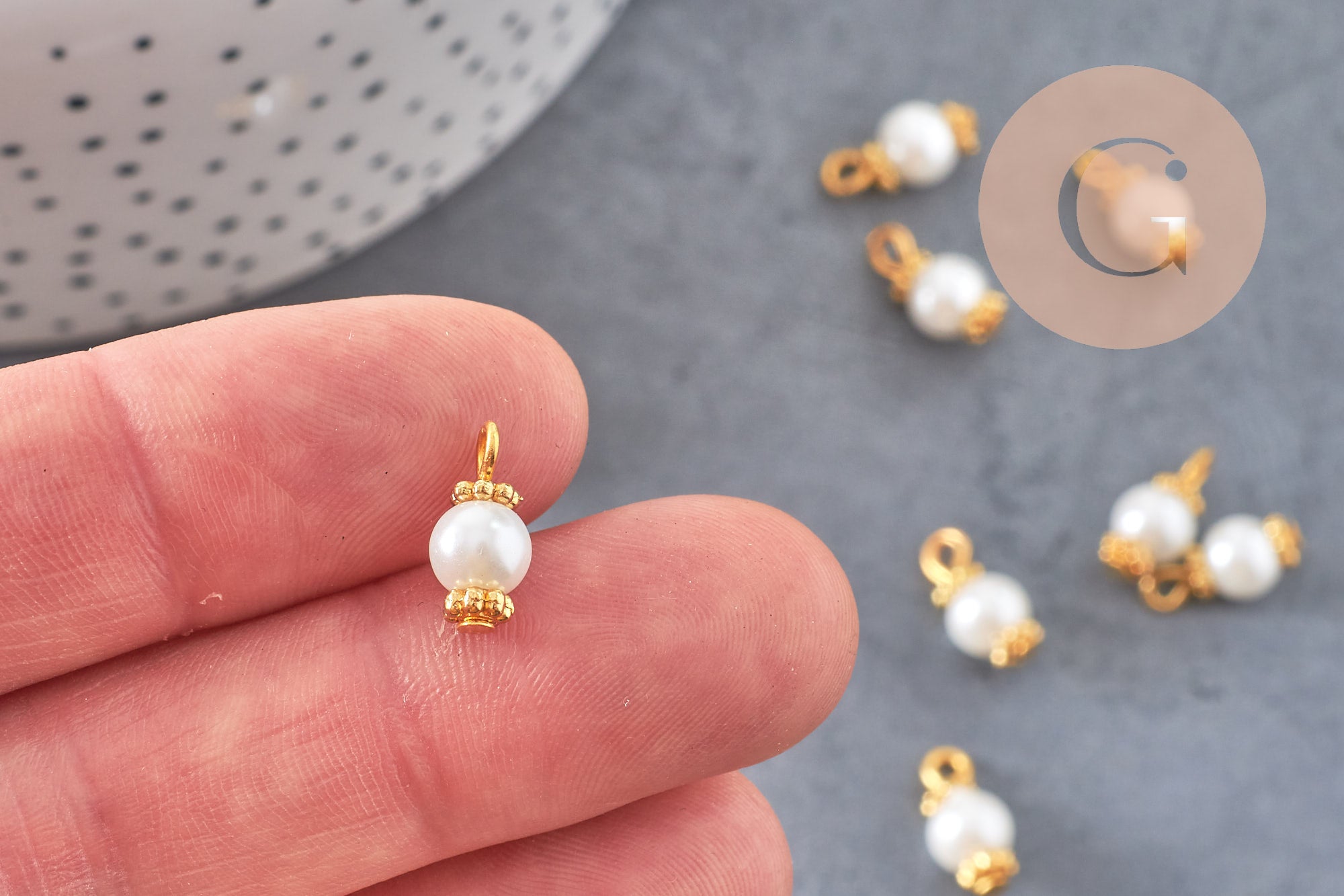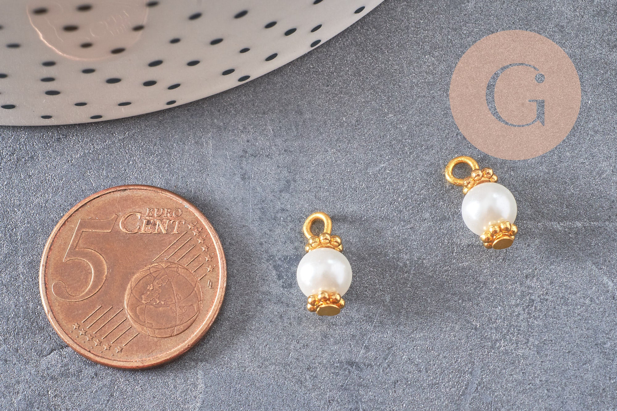 Colgante de perla redonda de vidrio blanco nacarado de latón dorado 12,5 mm, joyería de creación de perlas de imitación, x10 G7137