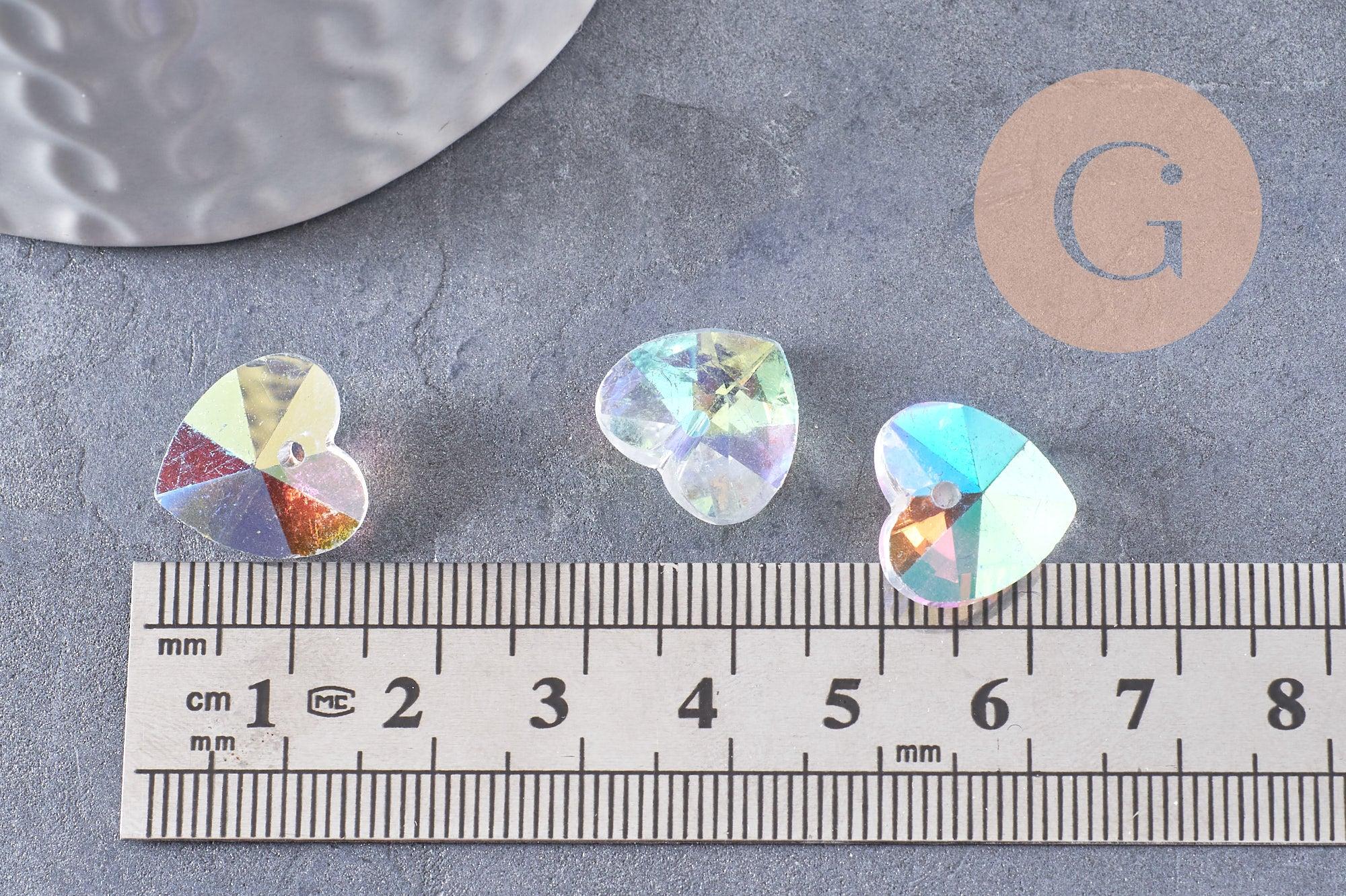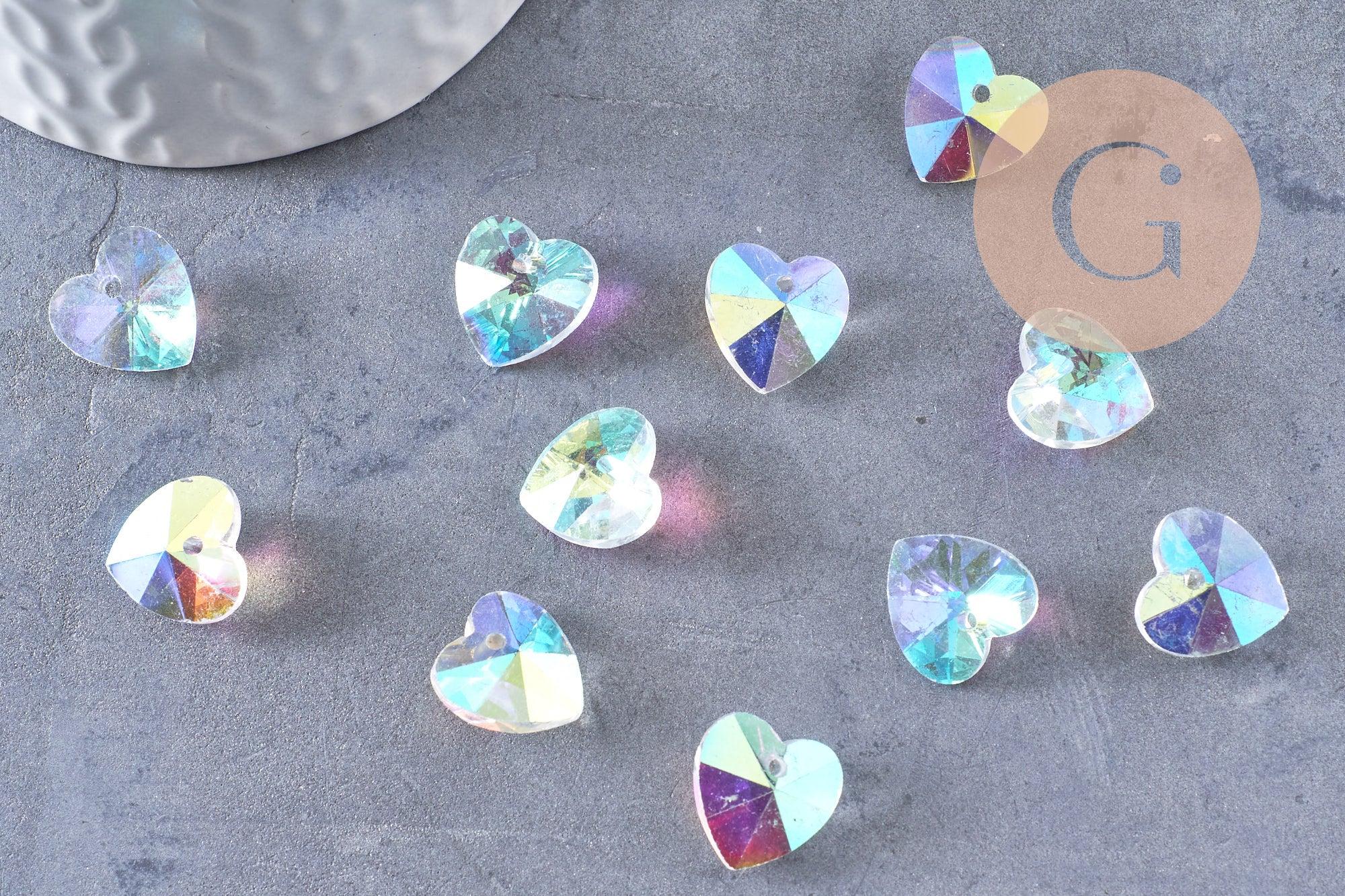 Pendentif cœur facetté en cristal transparent irisé 14mm, x10 (G10413)