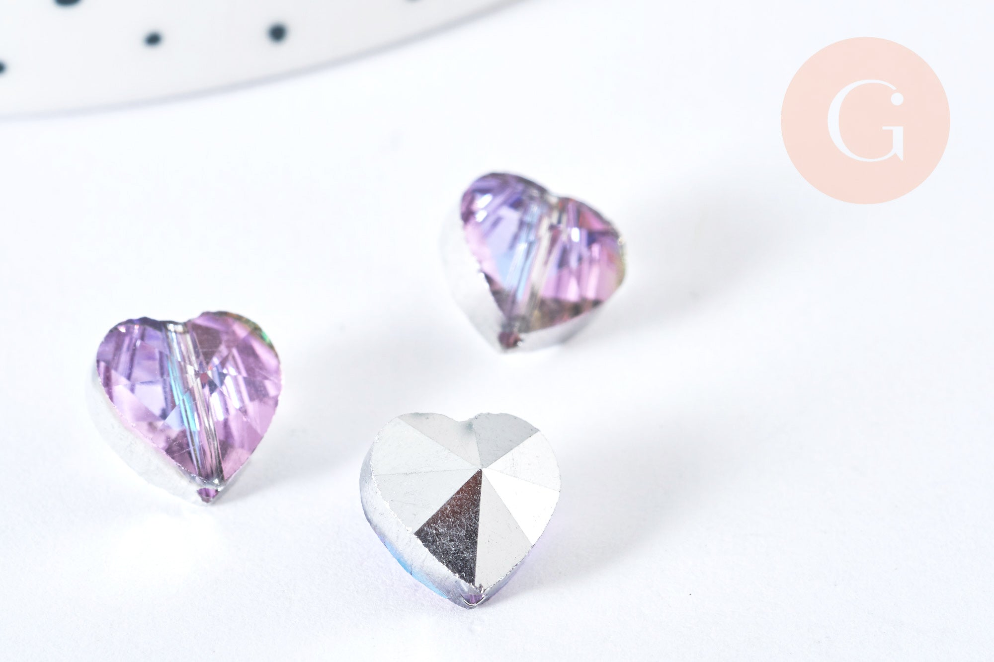 Este corazón está hecho de cristal morado. Este es ideal para todas tus creaciones de bisutería DIY . ¡Además, puedes usarlo en costura para decorar una manga o un bolsillo de tu prenda!
