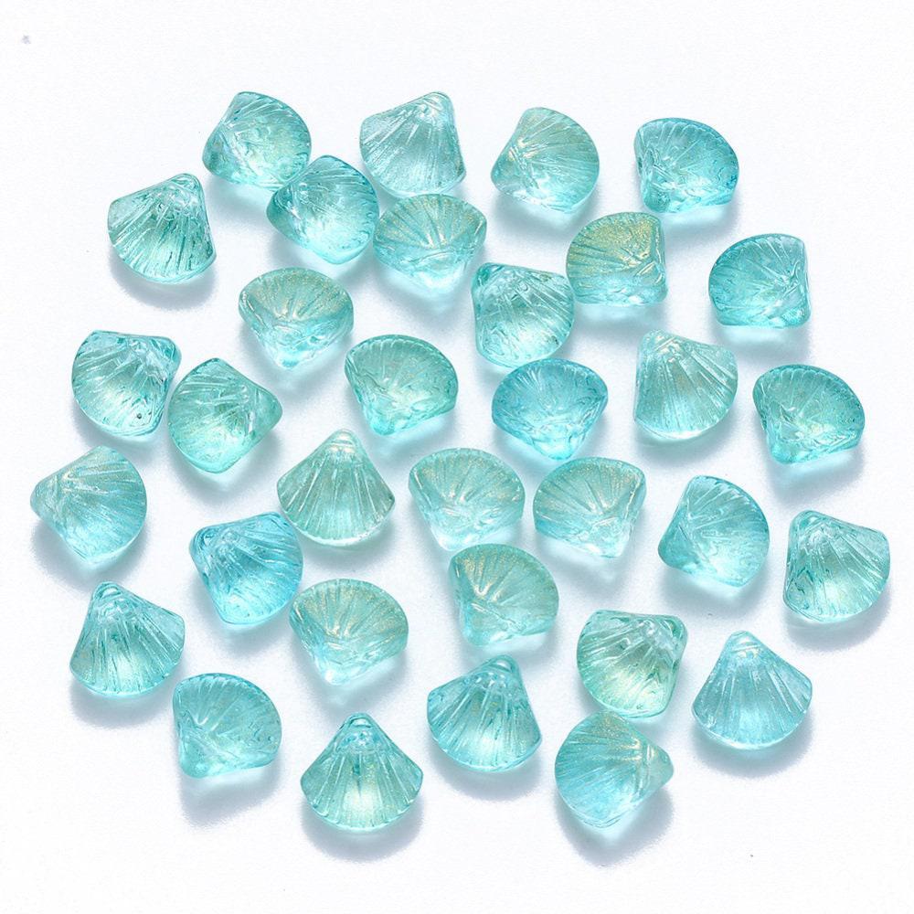Cuenta de concha de vidrio transparente verde, cuentas de vidrio checo, cuenta de concha, vidrio púrpura, creación de joyas, 10,5 mm, lote 10 cuentas