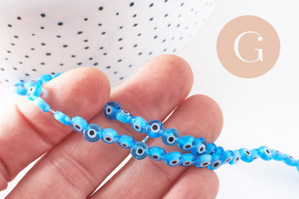 Cuentas de disco de ojo malvado griego, vidrio azul, cuentas de vidrio, cuentas de la suerte, cuentas de vidrio para manualidades, cuentas de la suerte, 6 mm, tira, x1 (G2626)