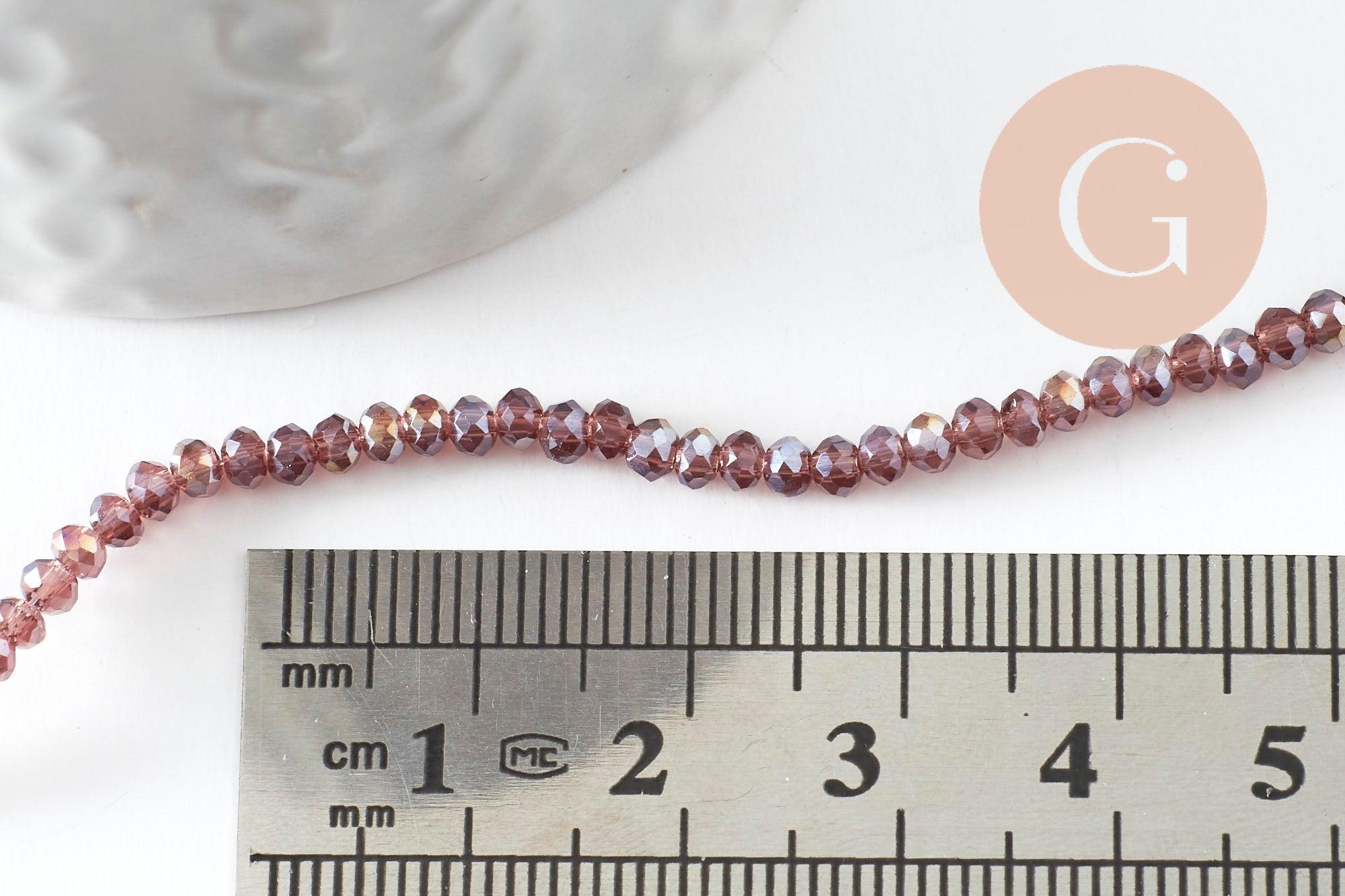 Cuentas de ábaco de cristal violeta rosa iridiscente de 3 x 2 mm, 1 tira de 39 cm (G3396)