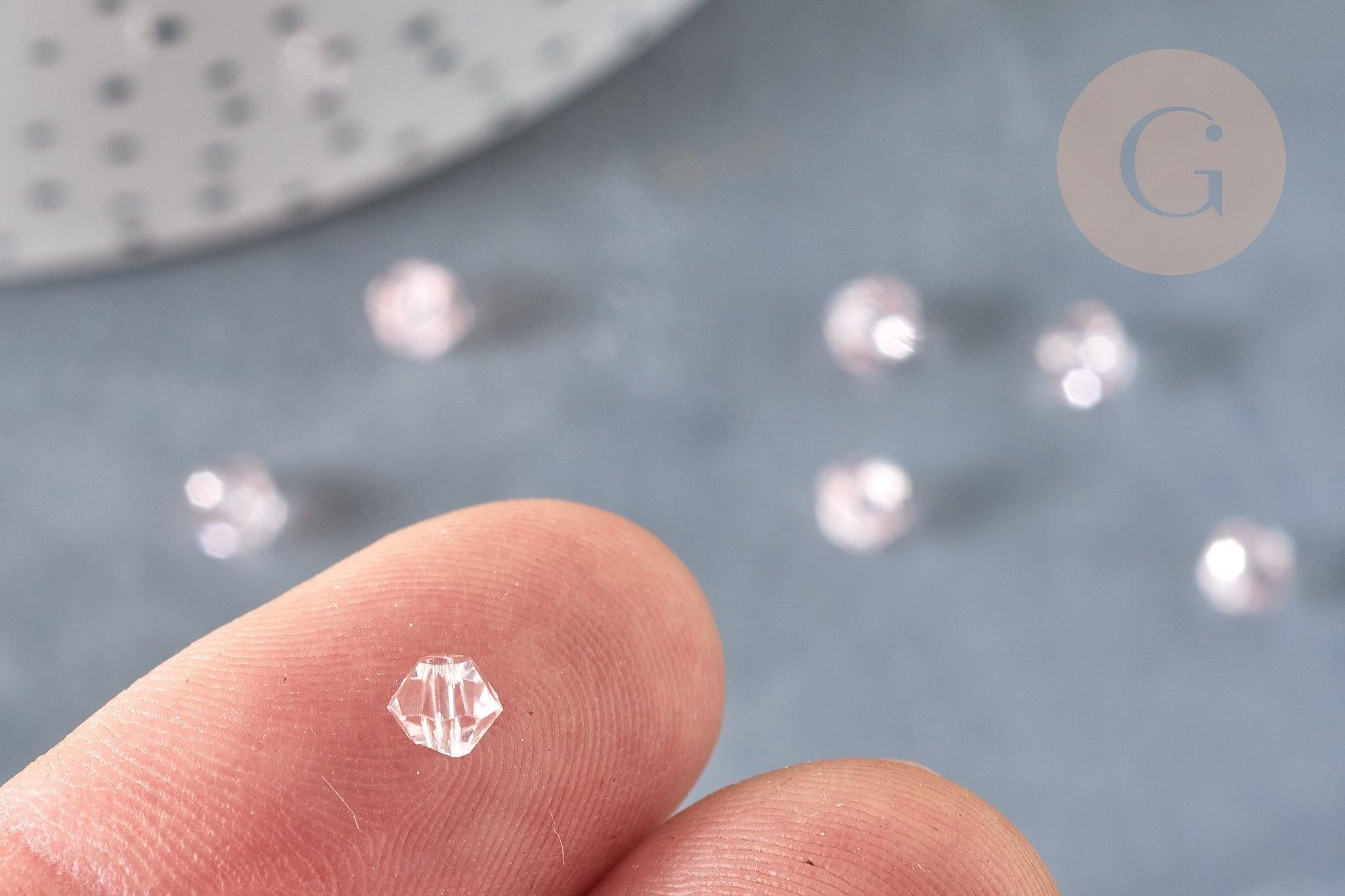 Déjate seducir por estas cuentas de vidrio rosa, transparentes, iridiscentes y facetadas imitación cristal, cuentas ideales para crear todas tus joyas o adornar tus creaciones textiles y otros complementos.