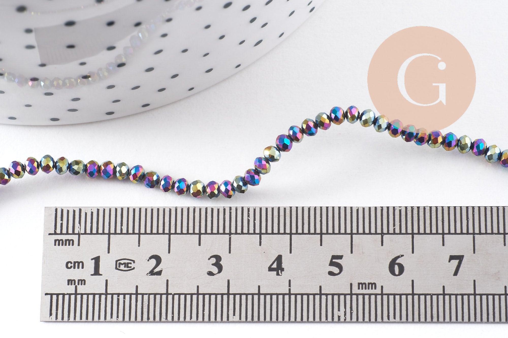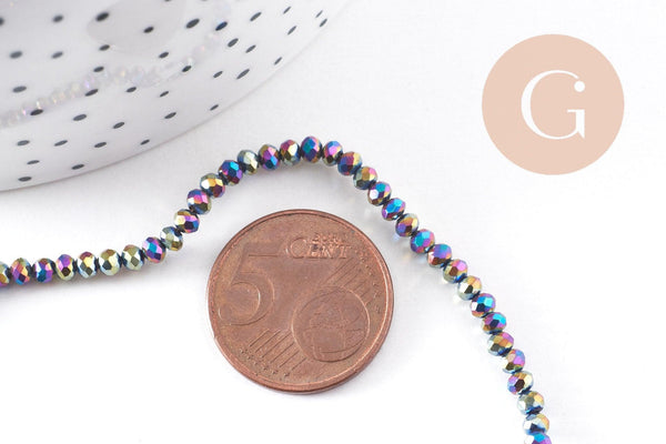 Perles abacus cristal à facette noir irisé 3x2mm, x1 fil de 32cm (G4692)
