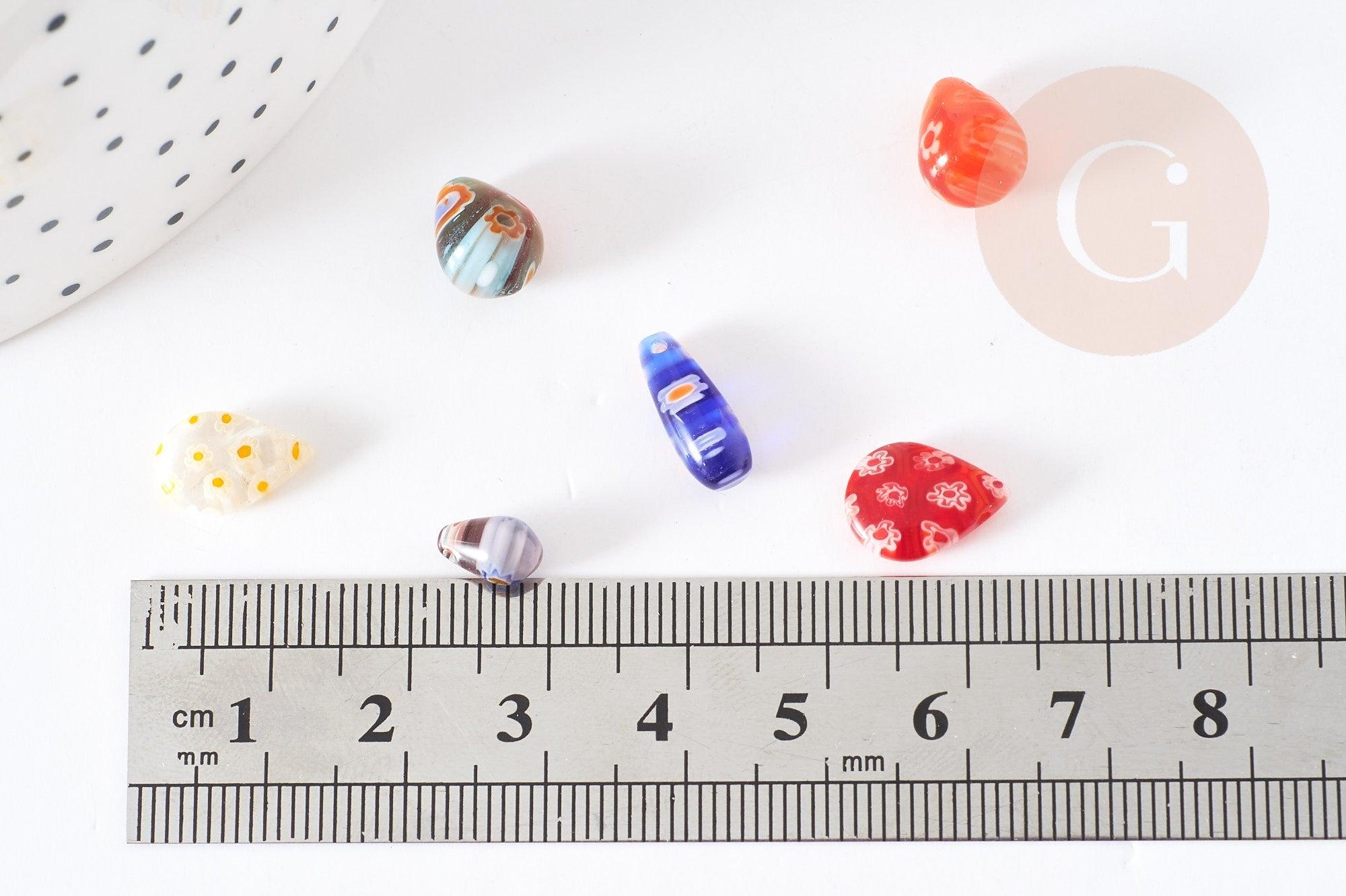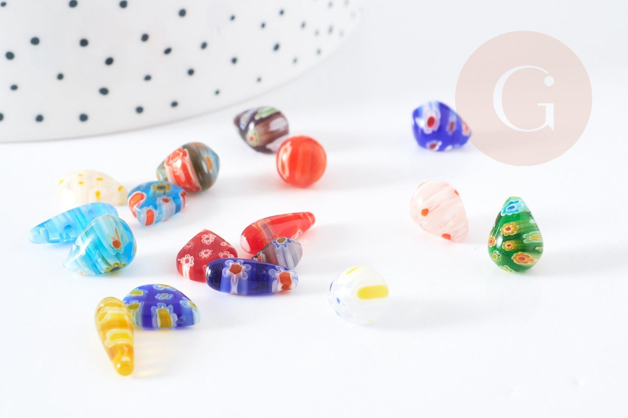 Descubra nuestra colección de cuentas de cristal Millefiori en forma de gota, cuentas de cristal artesanales ideales para sus creaciones de joyería DIY. Estas cuentas únicas y coloridas se venden en juegos de 5, lo que le permite agregar un toque de creatividad a sus proyectos.