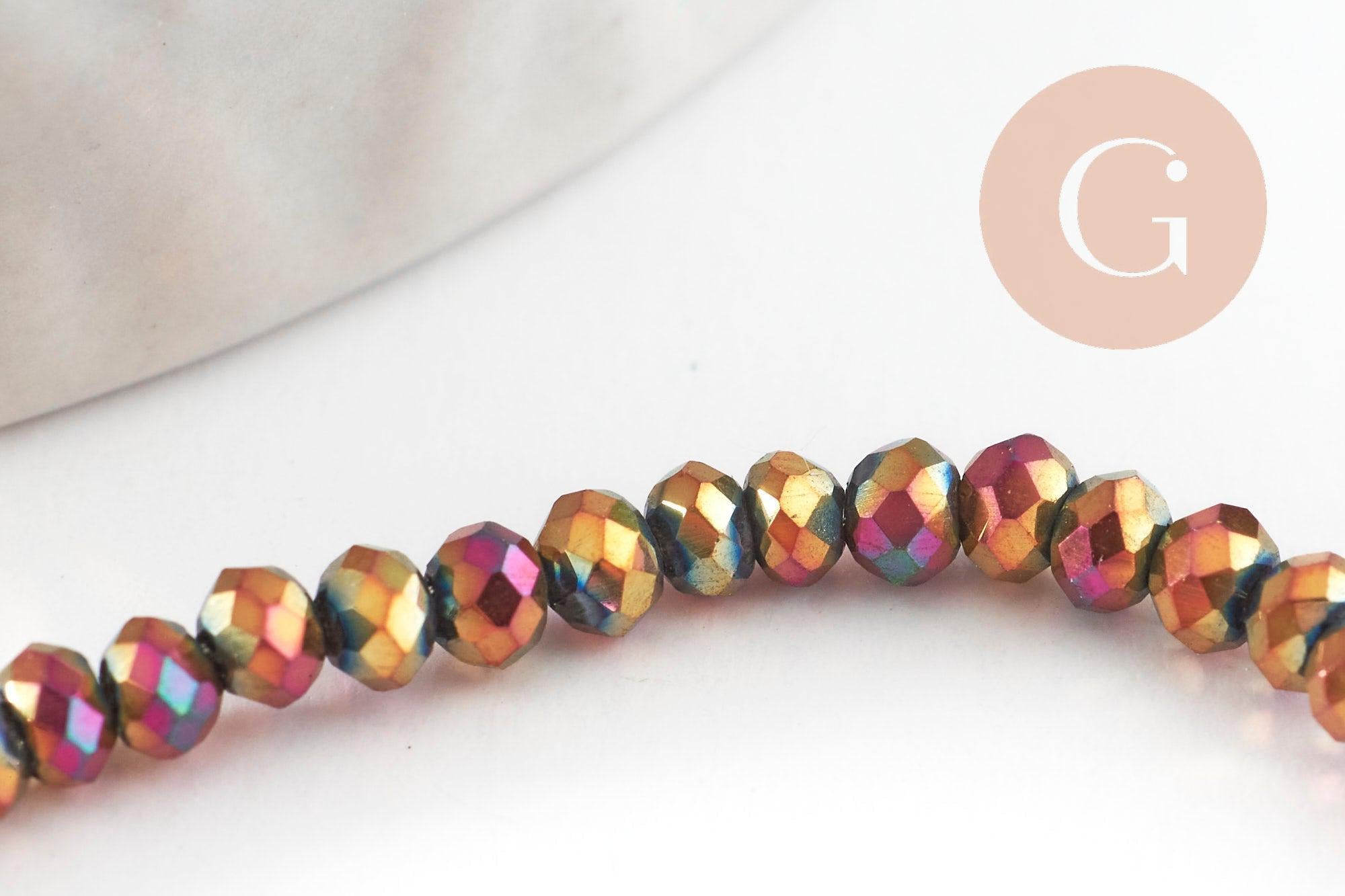 Cuentas de peonza de cristal rojo iridiscente metalizado de 3 x 2 mm, cuentas para creación de joyas, 33 cm x 1 hilo (G8106)